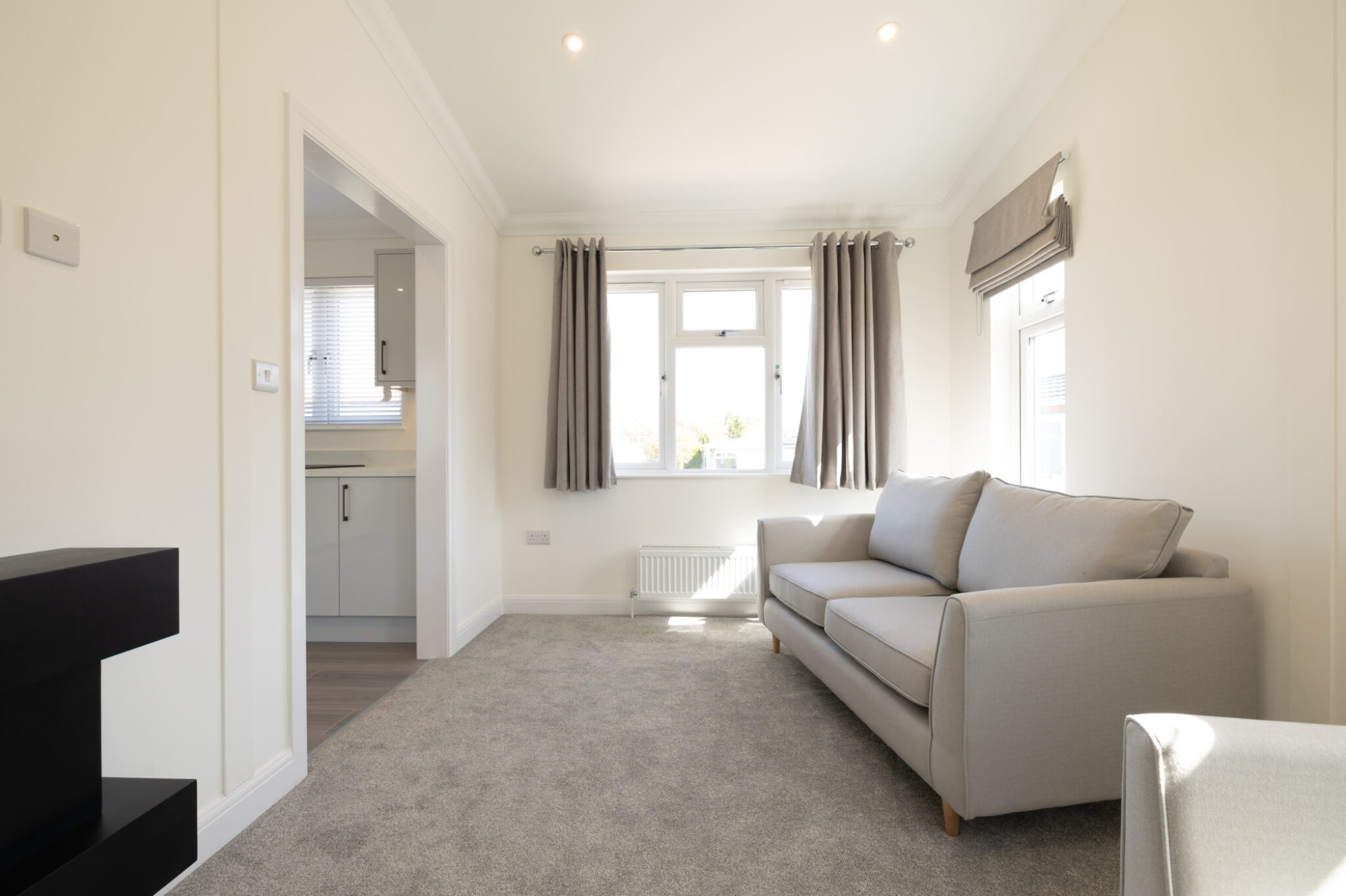 This brand new, modern Manor Lancaster (45'x14') park home is perfect for those looking for a detached, easy to maintain, bungalow-style property. The homes has a modern kitchen with integrated appliances, comfortable living room with a fireplace, two bedrooms and a bathroom. The home has a garden space with shed.