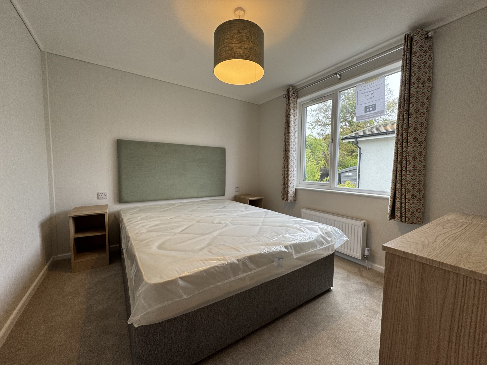 This brand new, modern-furnished Prestige Sonnet (40'x20') park home is perfect for those looking for a detached, easy to maintain, bungalow-style property. The home features a spacious kitchen and dining area, living space, and two bedrooms. The exterior features a garden area and a driveway.
