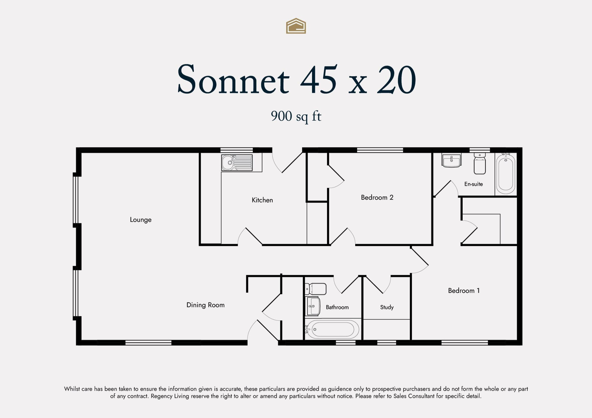 This brand-new, modern-furnished Sonnet (45'x20') luxury park home is perfect for those looking for a detached, easy-to-maintain, bungalow-style property. The home has a spacious kitchen, dining area, comfortable living room, and a study. The master bedroom has an en suite and walk in wardrobe, there is a second double bedroom and a bathroom.