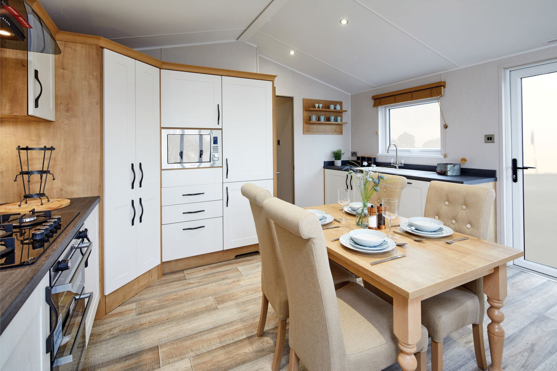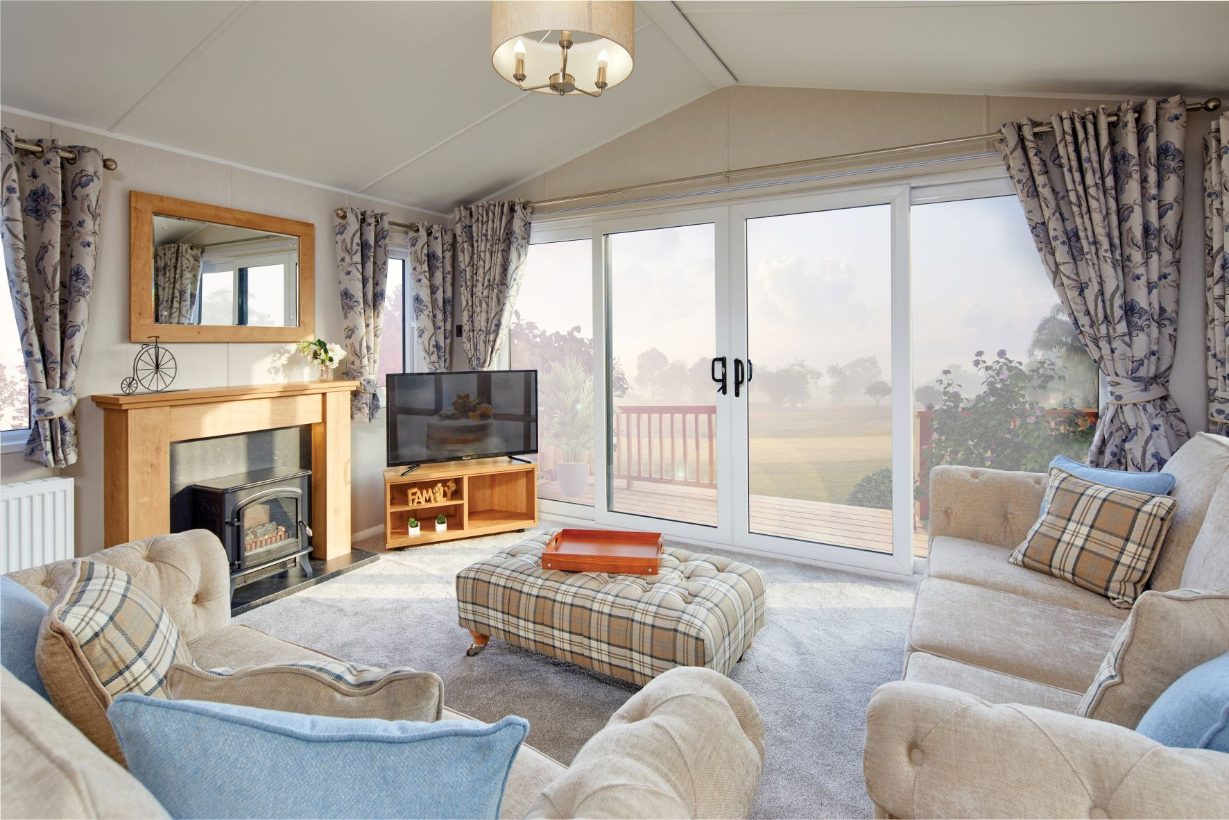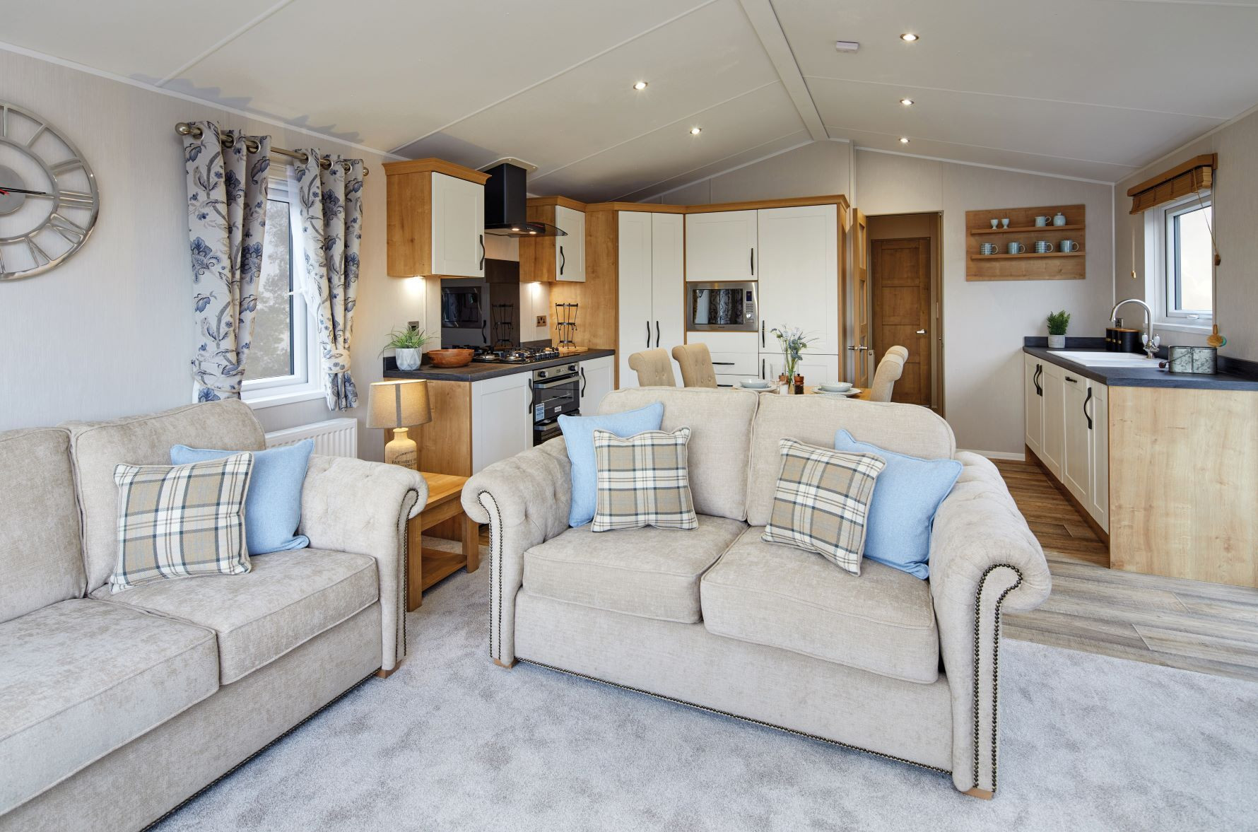 This brand new, modern-furnished Willerby Dorchester (43'x14') residential park home is perfect for those looking for a detached, easy to maintain, bungalow-style retirement property. The home features comfortable, open plan living with a kitchen area, large windows, modern furniture, and two bedrooms.