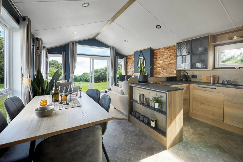 This brand new, modern-furnished ABI Westwood (44'x14') residential park home is perfect for those looking for a detached, easy to maintain, bungalow-style retirement property. The home features comfortable, open plan living and a kitchen area with large windows, modern furniture, and two bedrooms.