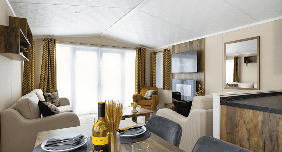 This brand-new, modern-furnished Pemberton Avon (38'x12') luxury park home is perfect for those looking for a detached, easy-to-maintain, bungalow-style property. The home has an open plan kitchen, dining room and living room with patio doors. The home has one double bedroom with an en suite toilet, a second twin bedroom and a bathroom.
