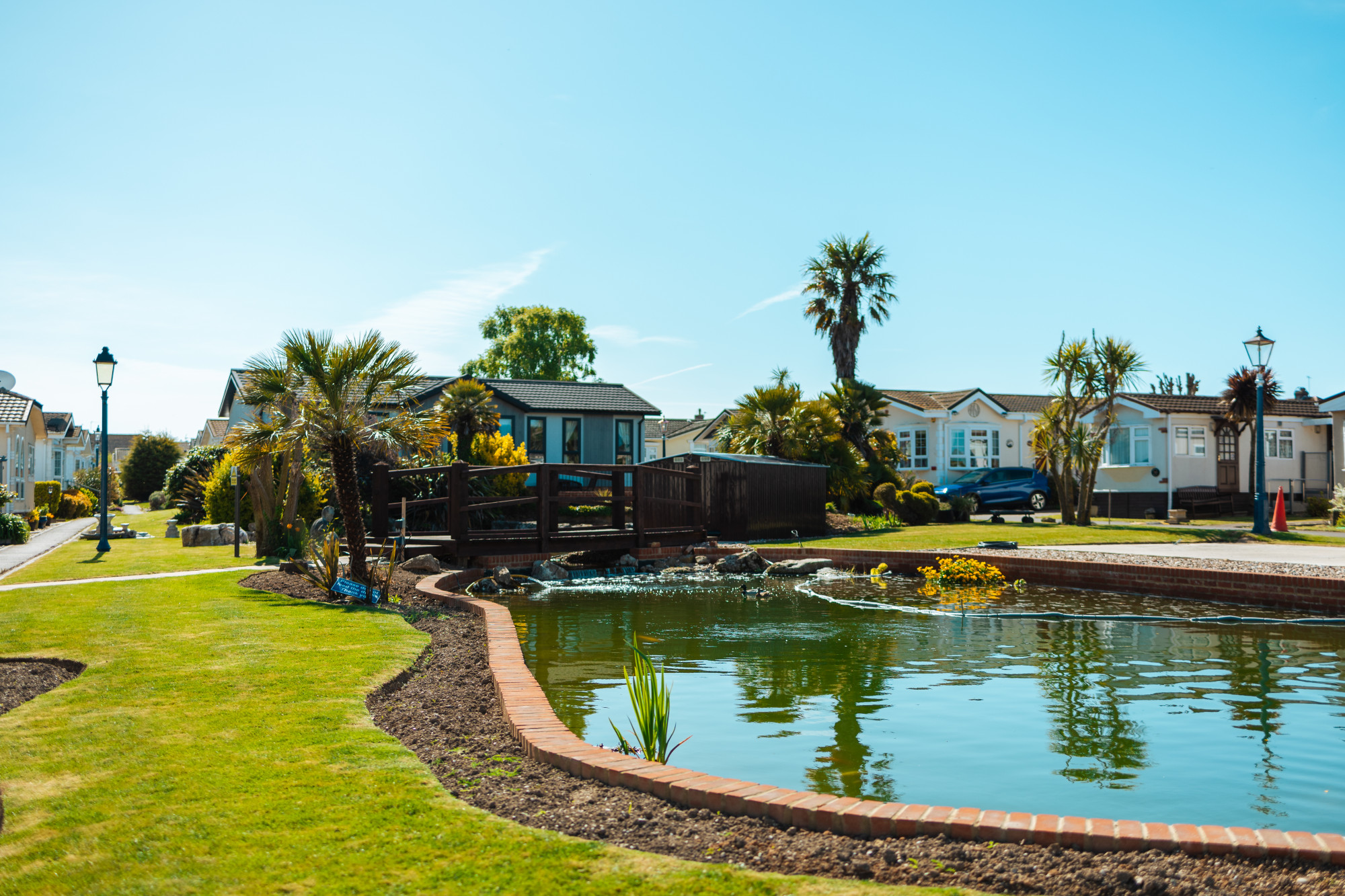 This residential development is situated in the convenient seaside village of Birchington. The park is beautifully landscaped has some beautiful water gardens and an abundance of tropical plants, palm trees and 18th century Italian statues. It is a well-established park of 140 homes, it is exclusive for the over 55's and does not allow pets.