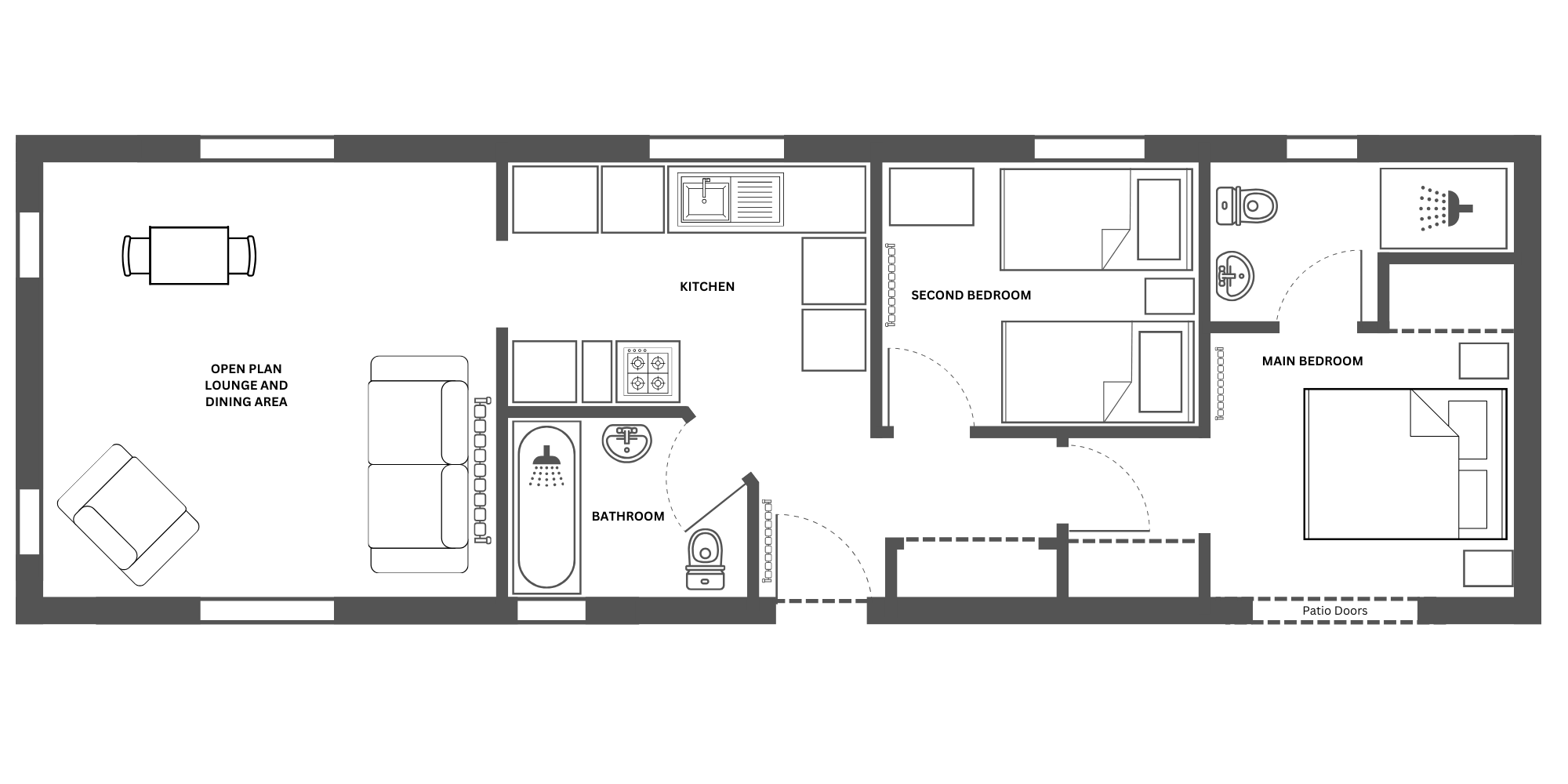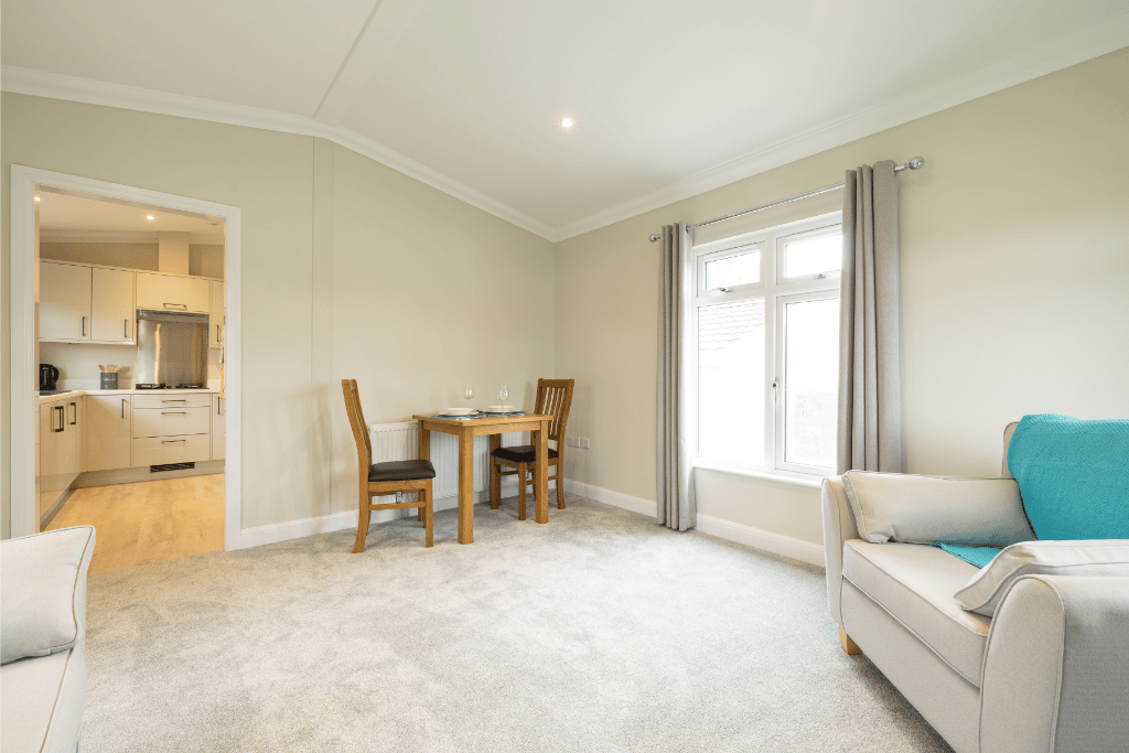 This brand new, fully furnished modern Manor Berkeley Plus (45'x14') park home is perfect for those looking for a detached, easy to maintain, bungalow-style property. The home boasts the latest construction techniques, design, and guarantees and enjoys modern full furnishings and integrated appliances. The home has a spacious kitchen, living and dining area, two bedrooms and two bathrooms.