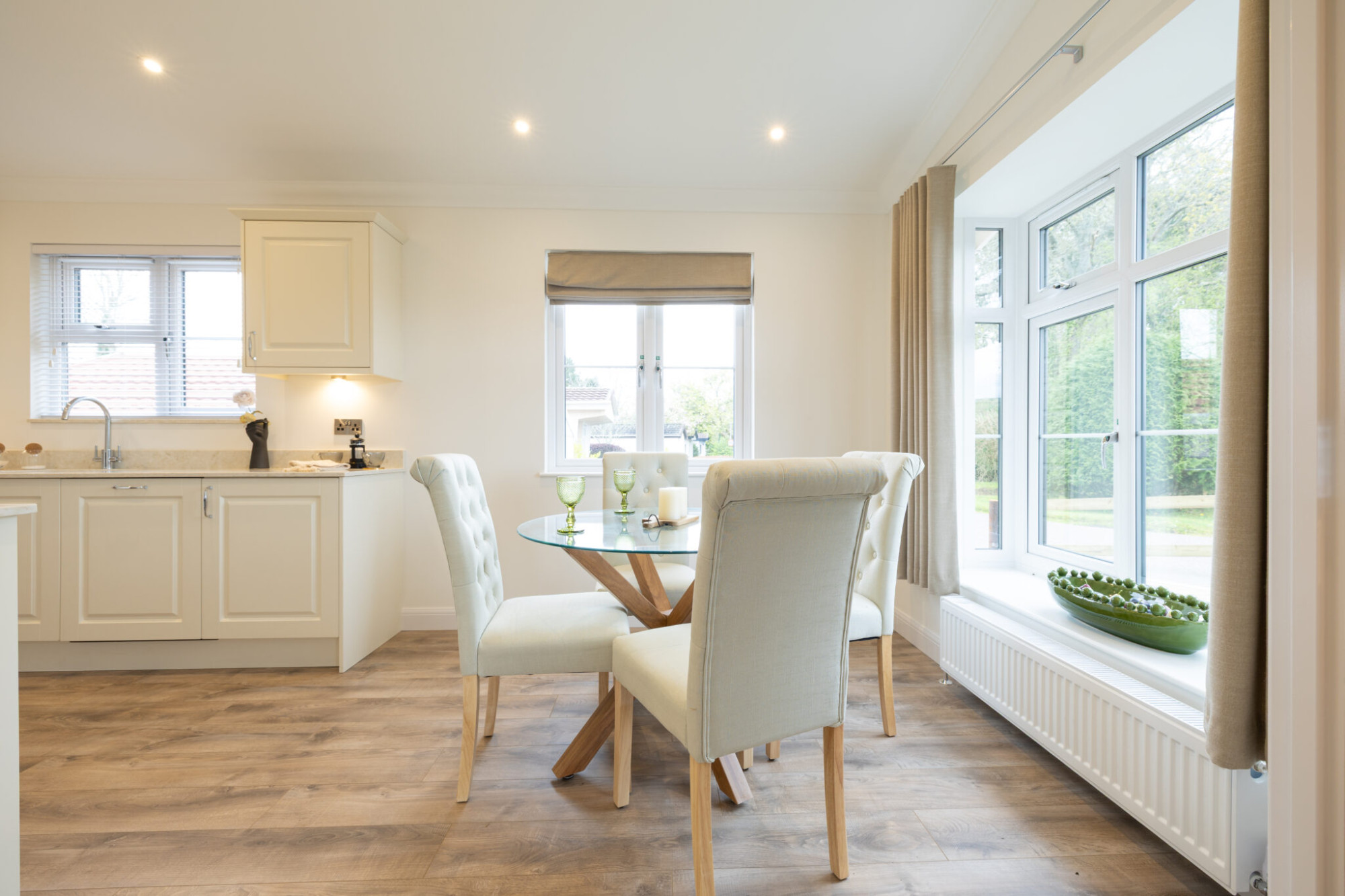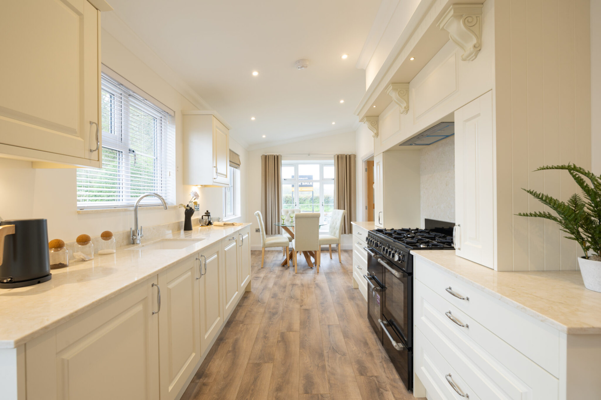 This brand new, fully furnished modern Manor Warkton Platinum (45'x20') park home is perfect for those looking for a detached, easy to maintain, bungalow-style retirement property. The home boasts the latest construction techniques, design, and guarantees and enjoys modern full furnishings and integrated appliances. The home has a spacious kitchen, living and dining area, two bedrooms and two bathrooms.