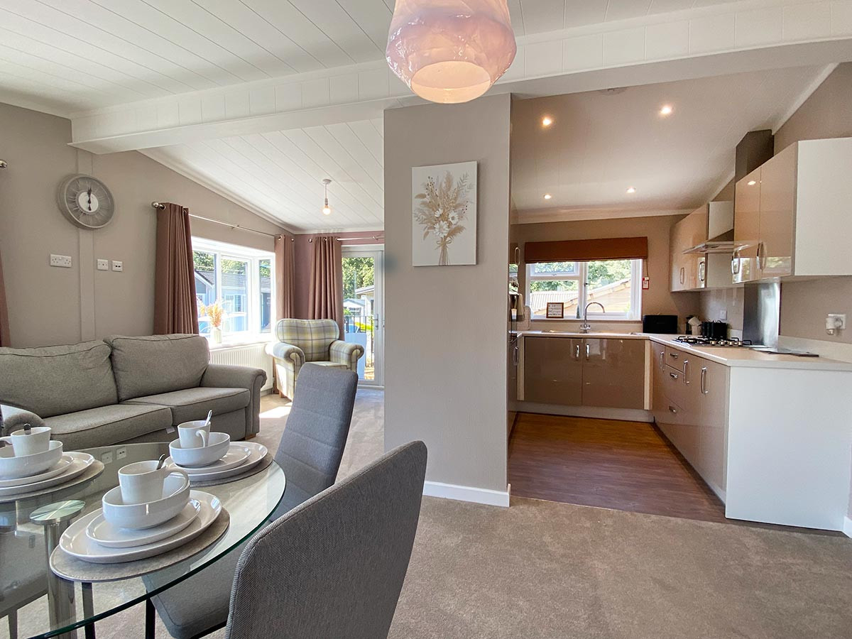 This brand-new, modern-furnished Tingdene Barnwell (36'x20') luxury park home is perfect for those looking for a detached, easy to maintain, bungalow-style property. The home has spacious kitchen, a comfortable living area, two bedrooms and two bathrooms. The landscaped exterior features a garden space and driveway.