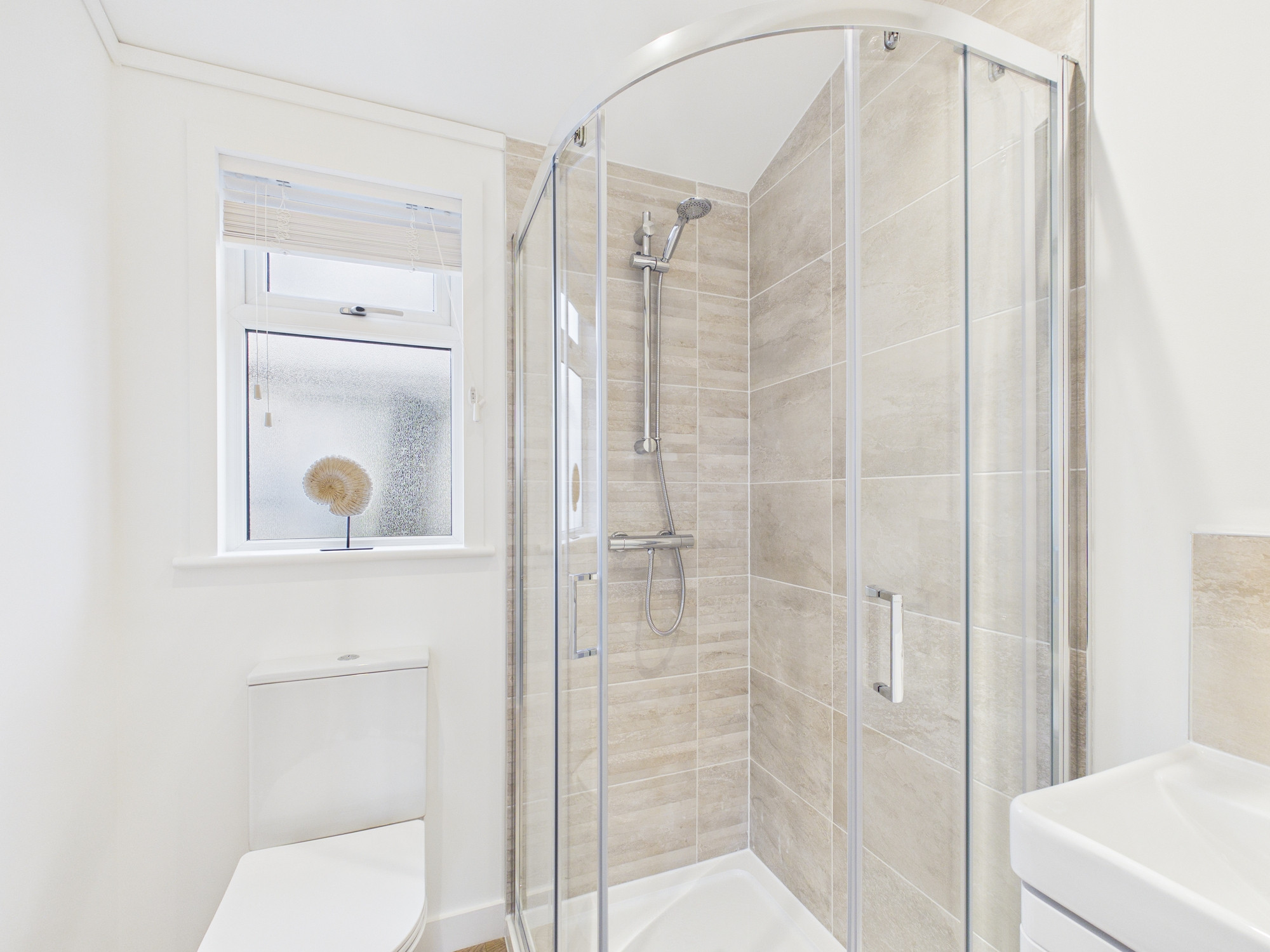 This brand new, modern furnished Pathfinder Custom park home (33'x11') is perfect for those looking for a detached, easy to maintain, bungalow style property. The home has an open plan kitchen, dining and living area with integrated appliance, one double bedroom with a built in wardrobe and a shower room.