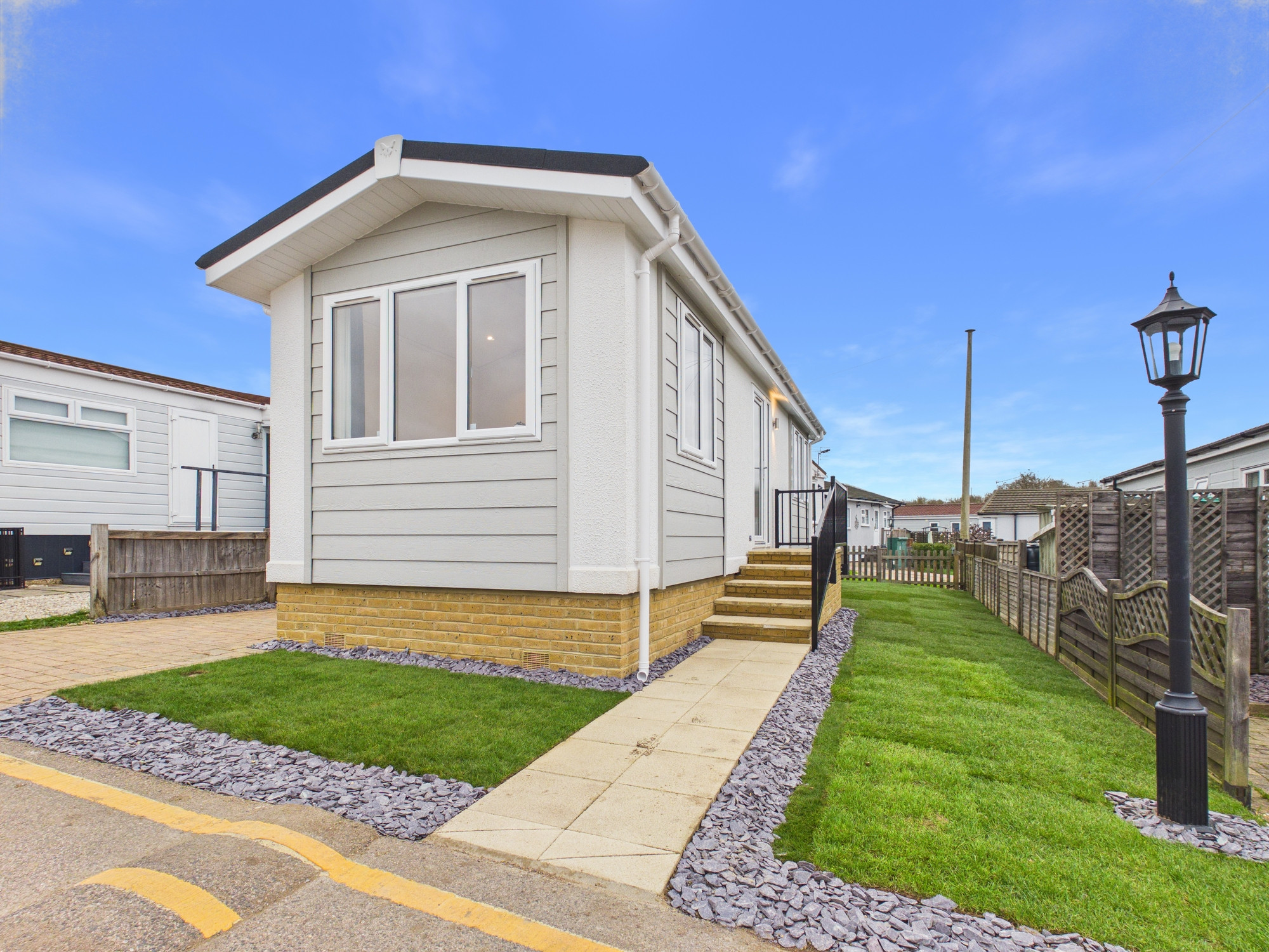BRAND NEW Park Home (33'x11') | Residential development | Over 45s | Fully furnished | High specification | Modern design | Easy to maintain garden | Private development | Parking | Transport links to London | Community living | Established development | Part exchange available