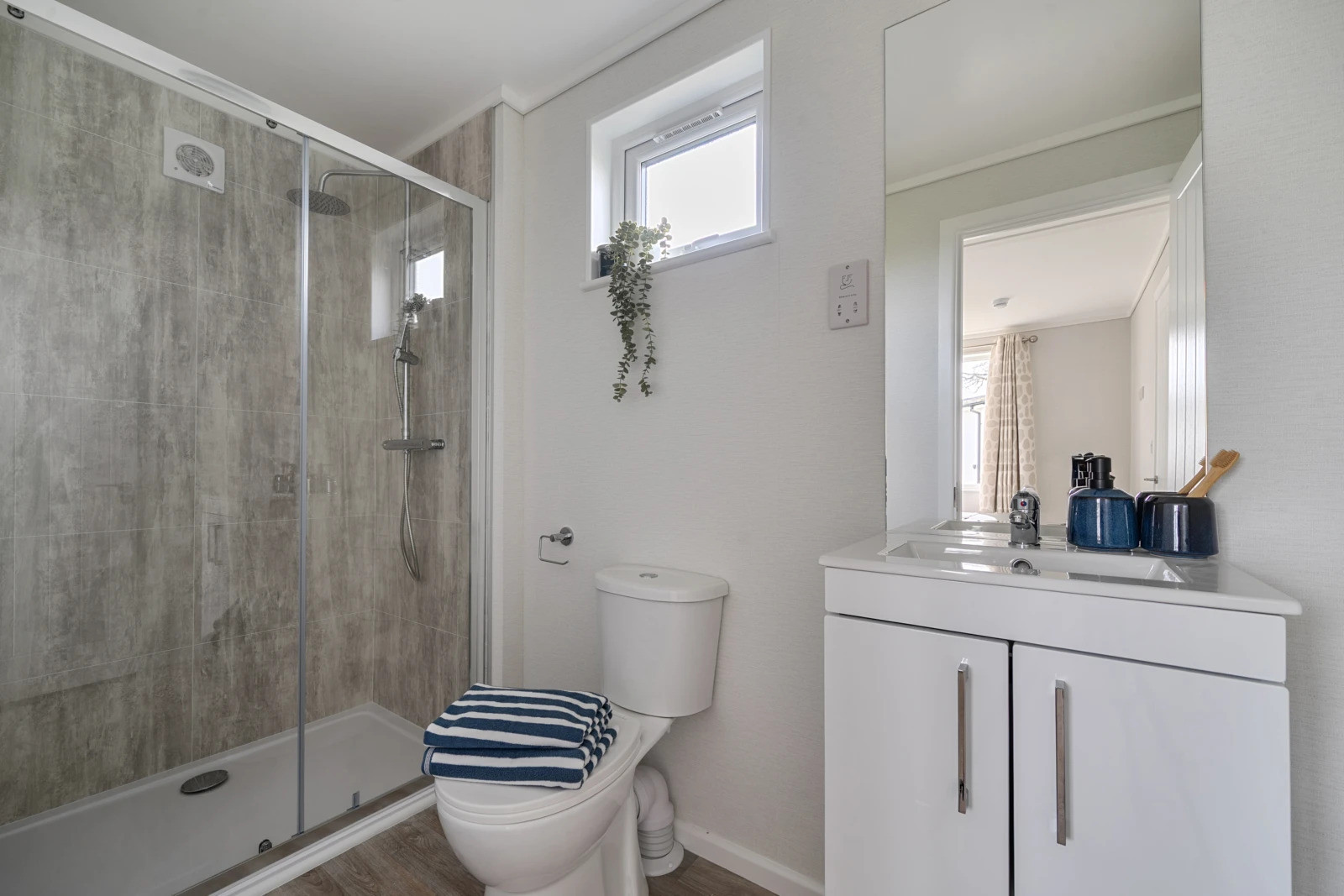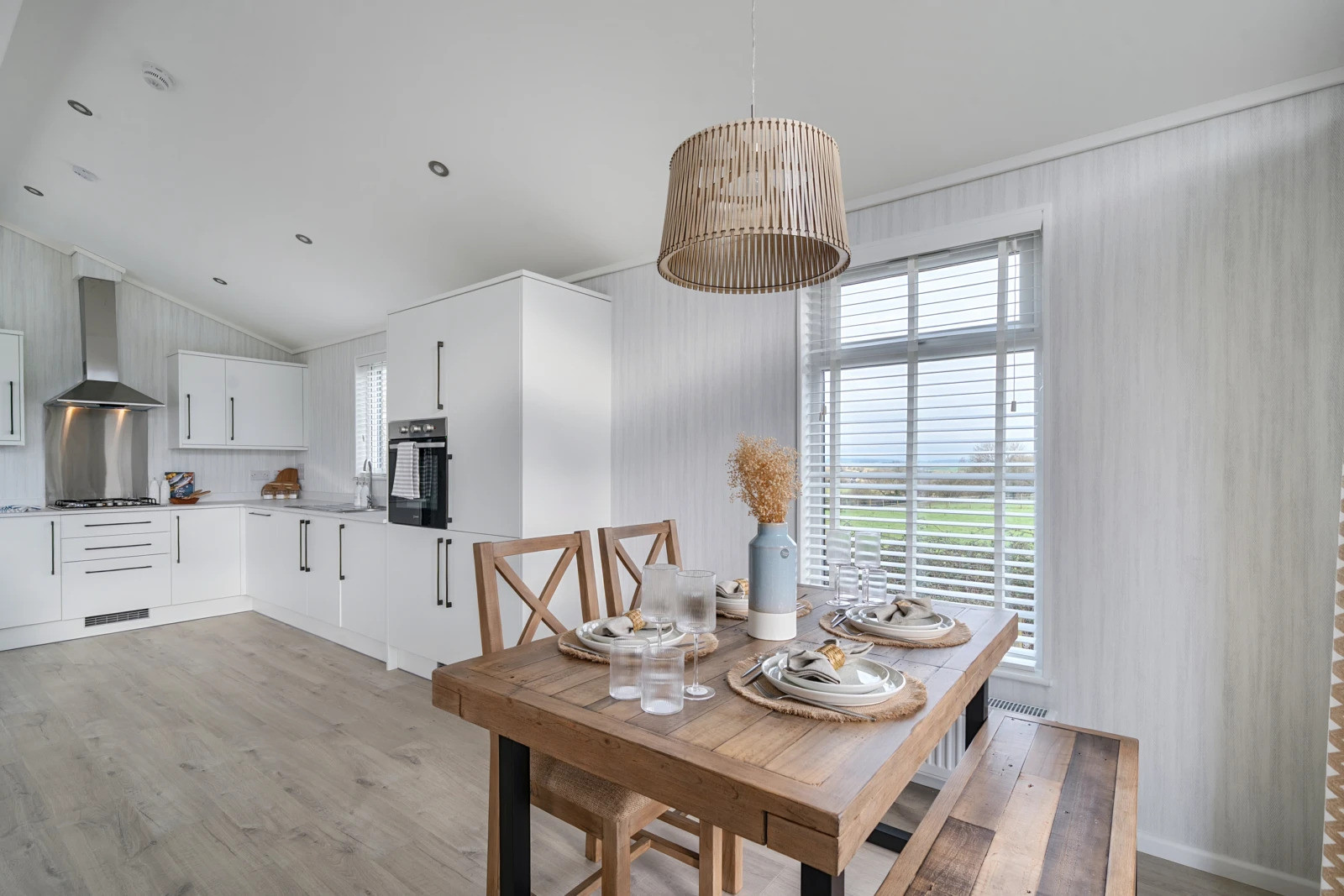 This brand-new, modern-furnished Nova park home (42'x20') is perfect for those looking for a detached, easy to maintain, bungalow style property. The home features a modern kitchen and dining room with integrated appliances, and a comfortable living room. There are two double bedrooms, an en suite and a bathroom.