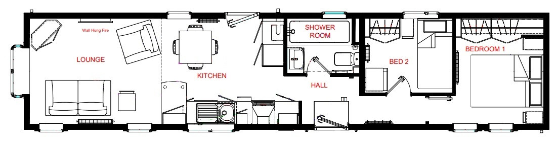 This brand new, modern-furnished Omar Newmarket (45'x10') luxury park home is perfect for those looking for a detached, easy to maintain, bungalow-style property. The home has an open plan kitchen/dining/living area, two bedrooms and one bathroom.