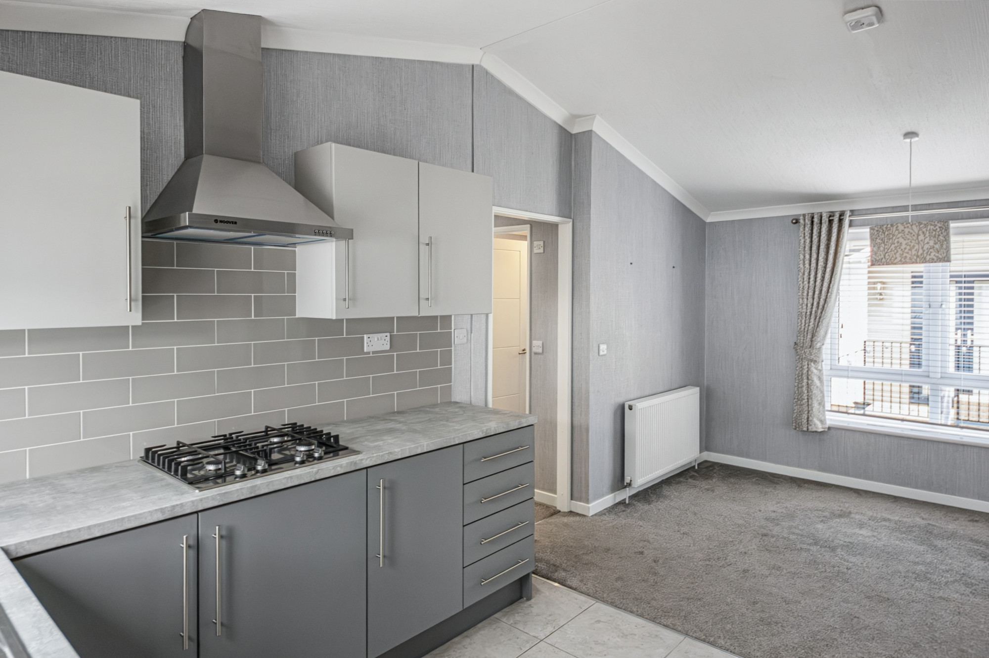 This pre-owned, modern Omar Image (36'x20') luxury park home is perfect for those looking for a detached, easy-to-maintain, bungalow-style property. The landscaped exterior boasts a private garden space and driveway. Built in 2020, the home features a spacious kitchen and dining area, comfortable living room with an electric fireplace, two bedrooms, and en suite and a family bathroom.