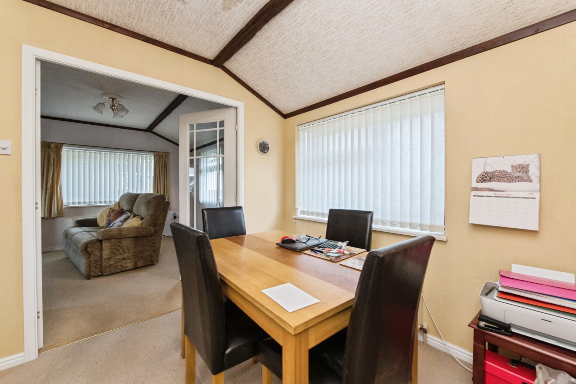 This pre-owned Prestige Lisset park home (42'x20') is perfect for those looking for a detached, easy to maintain, bungalow-style property. The home features two comfortable bedrooms both with fitted wardrobes and one with an en suite. There is a large living room, leading to a dining area and kitchen with integrated appliances and separate utility. The kitchen and living room enjoy delightful open views across rolling countryside.