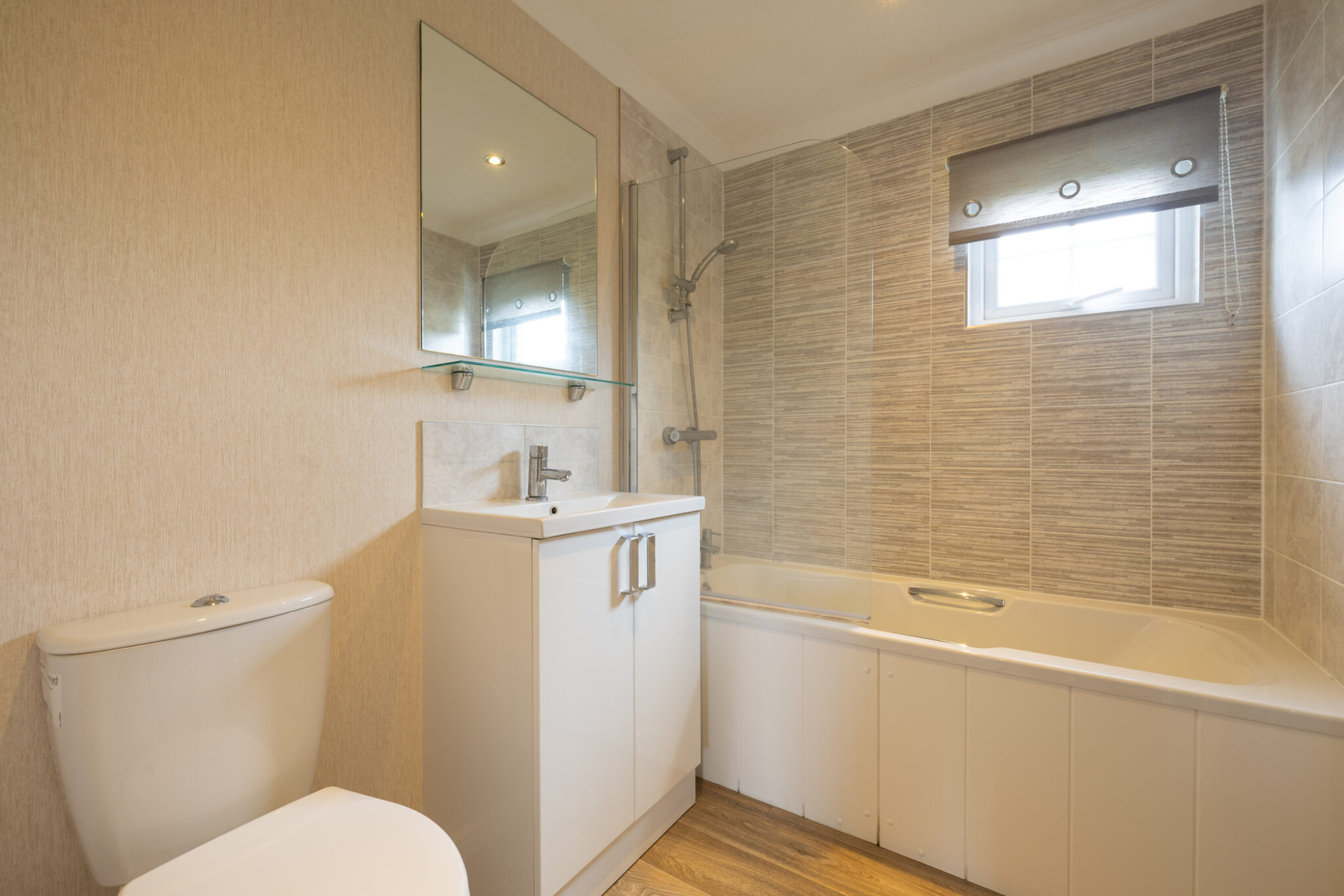 This pre-owned, modern Country Homes Kingsbridge (36'x22') park home is perfect for those looking for a detached, easy to maintain, bungalow style property. The home has a spacious, open plan style living and dining area, and a large quality fitted kitchen with integrated appliances including oven, hob, fridge and freezer. There is a double bedroom with plenty of built-in storage, and a luxurious bathroom with shower over bath.