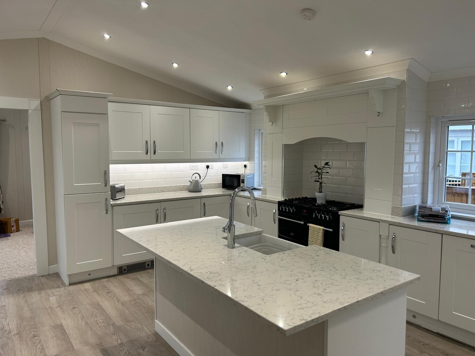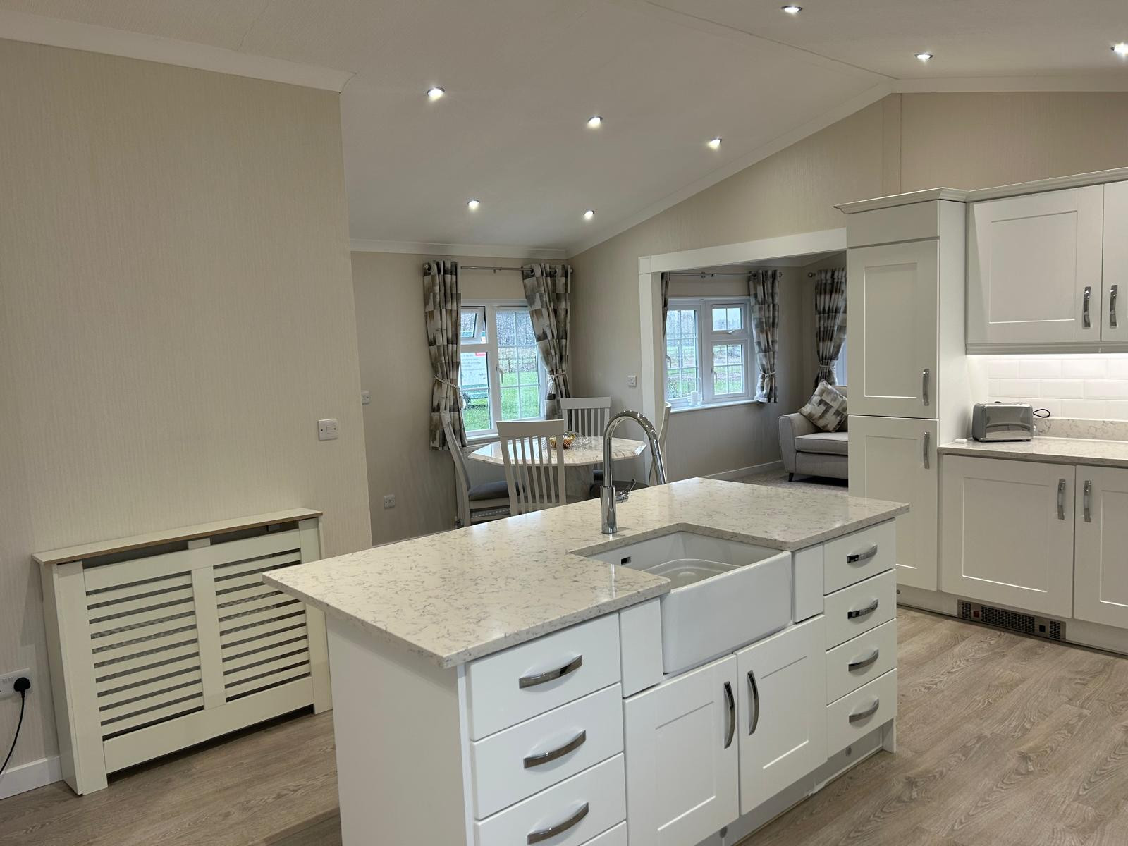 This brand new, modern-furnished Omar Middleton (50'x20') luxury park home is perfect for those looking for a detached, easy to maintain, bungalow-style property. The home features a fitted kitchen with integrated appliances, comfortable living area, three bedrooms, an en suite to the master bedrooms and a family bathroom. The landscaped exterior boasts a landscaped garden and driveway.