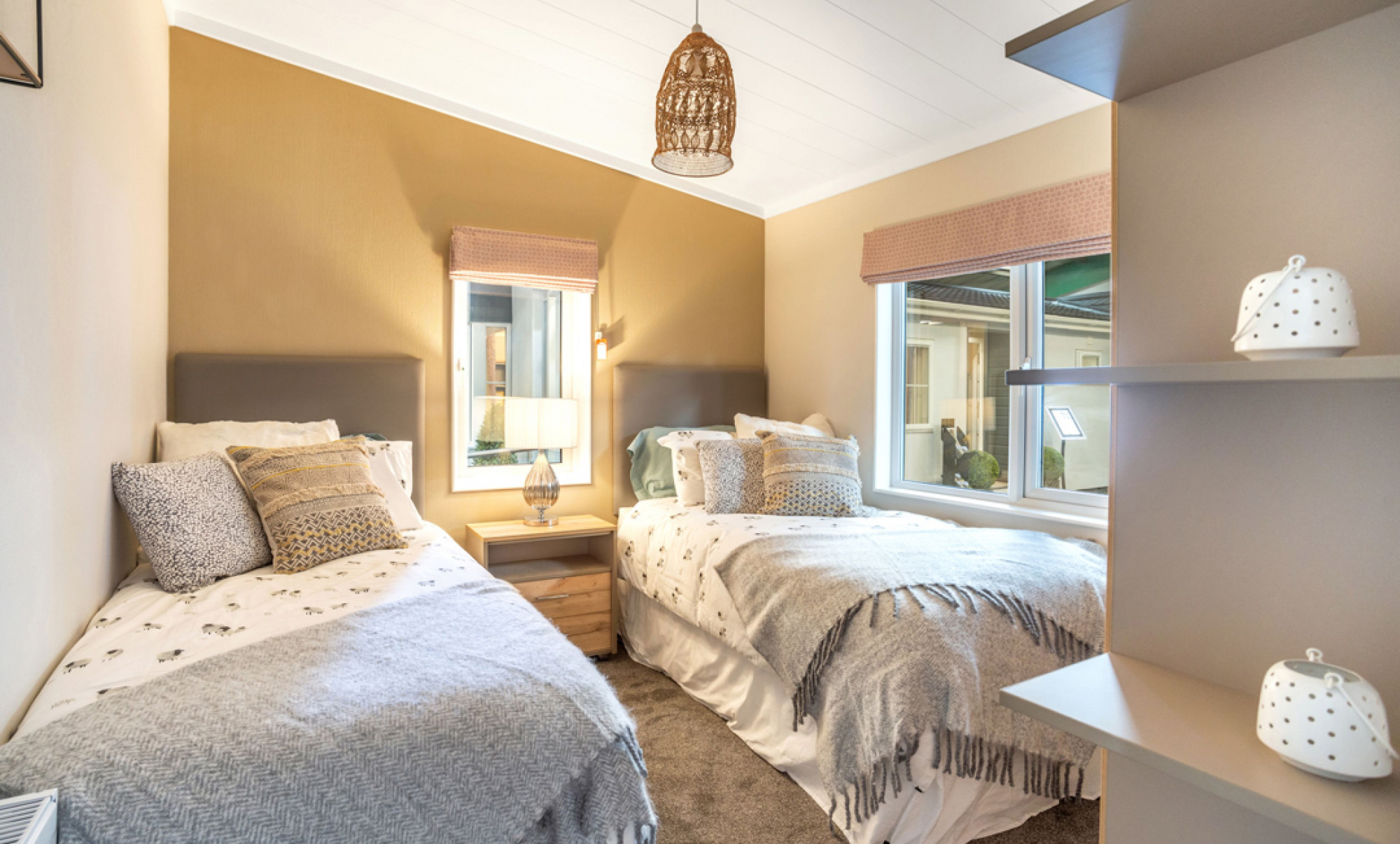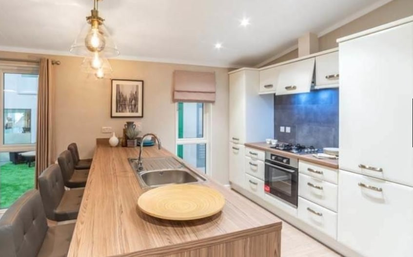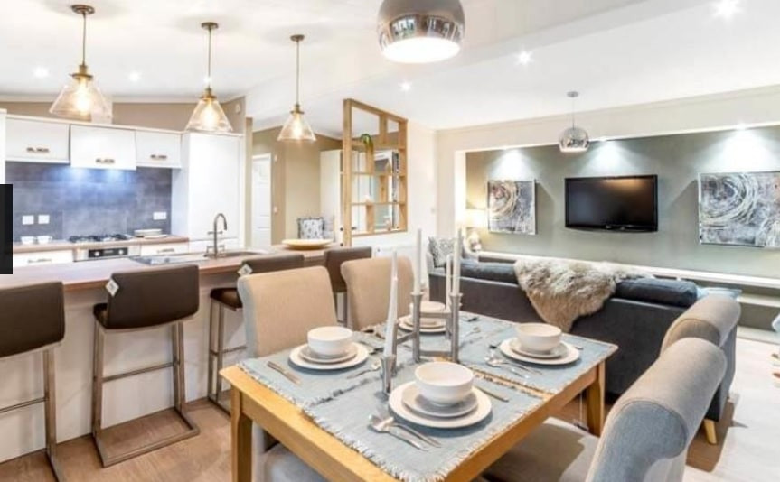 This brand new, modern-furnished Tingdene Harrington (40'x20') luxury park home is perfect for those looking for a detached, easy to maintain, bungalow style residential property. The home features an open plan kitchen, dining and living space, two bedrooms and two bathrooms. This home is on a premium plot offering uninterrupted views of the Moray countryside.