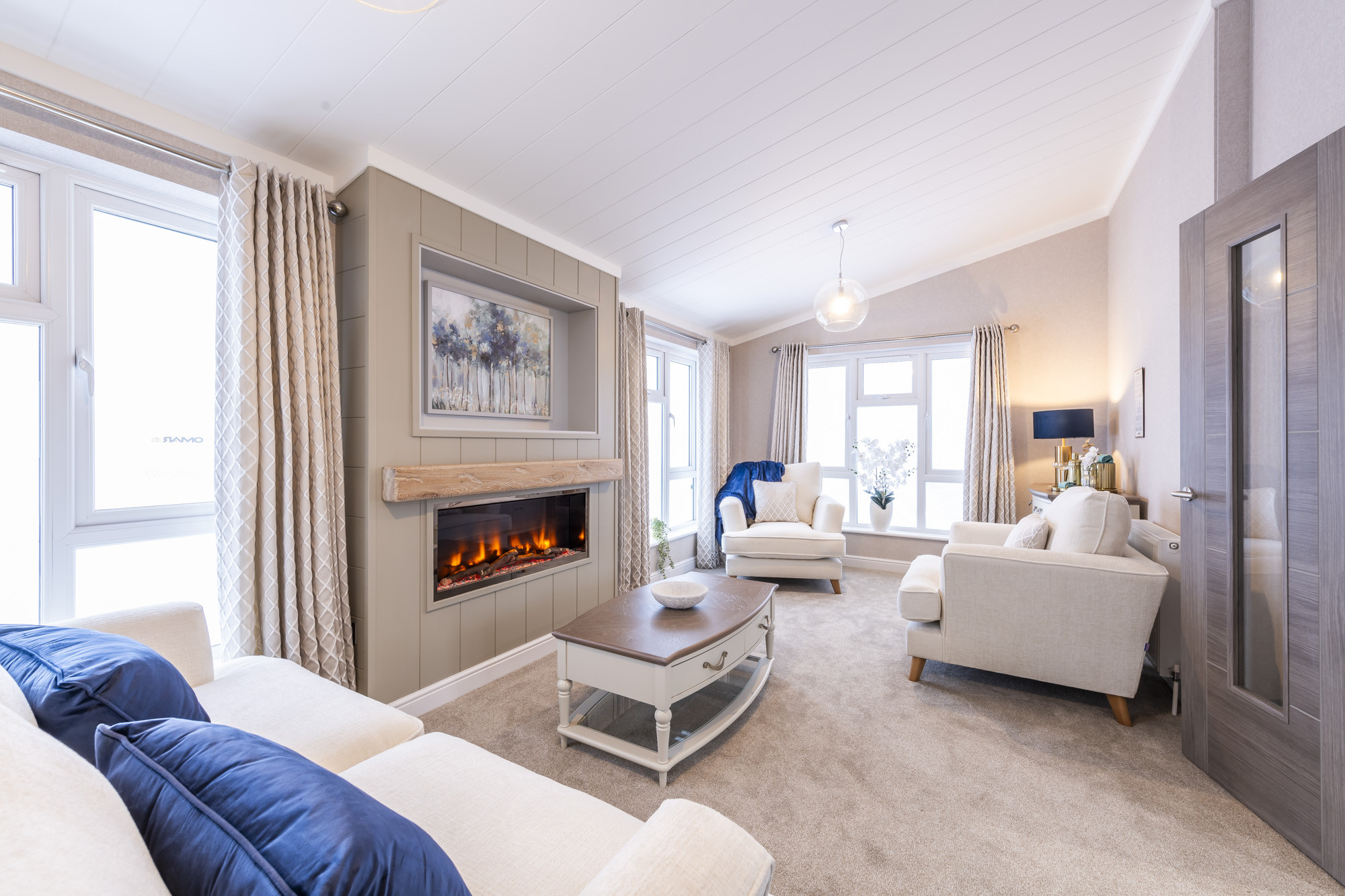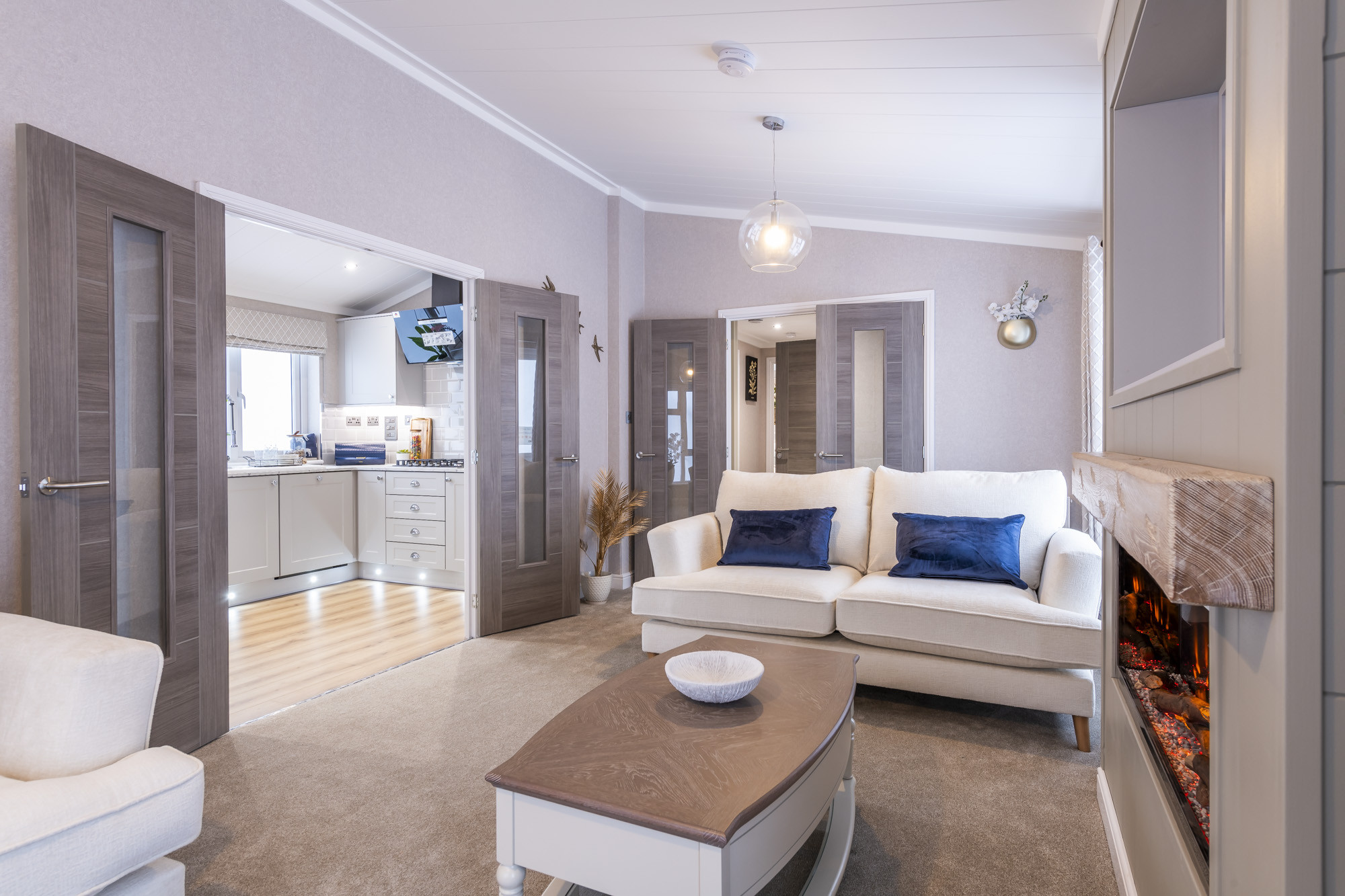 This brand-new, modern-furnished Omar Anniversary (50'x22') luxury park home is perfect for those looking for a detached, easy-to-maintain, bungalow-style property. The home has a modern kitchen with integrated appliances, comfortable living room with electric fireplace, two double bedrooms, an en suite and a bathroom. The home also has parking for 2 cars.