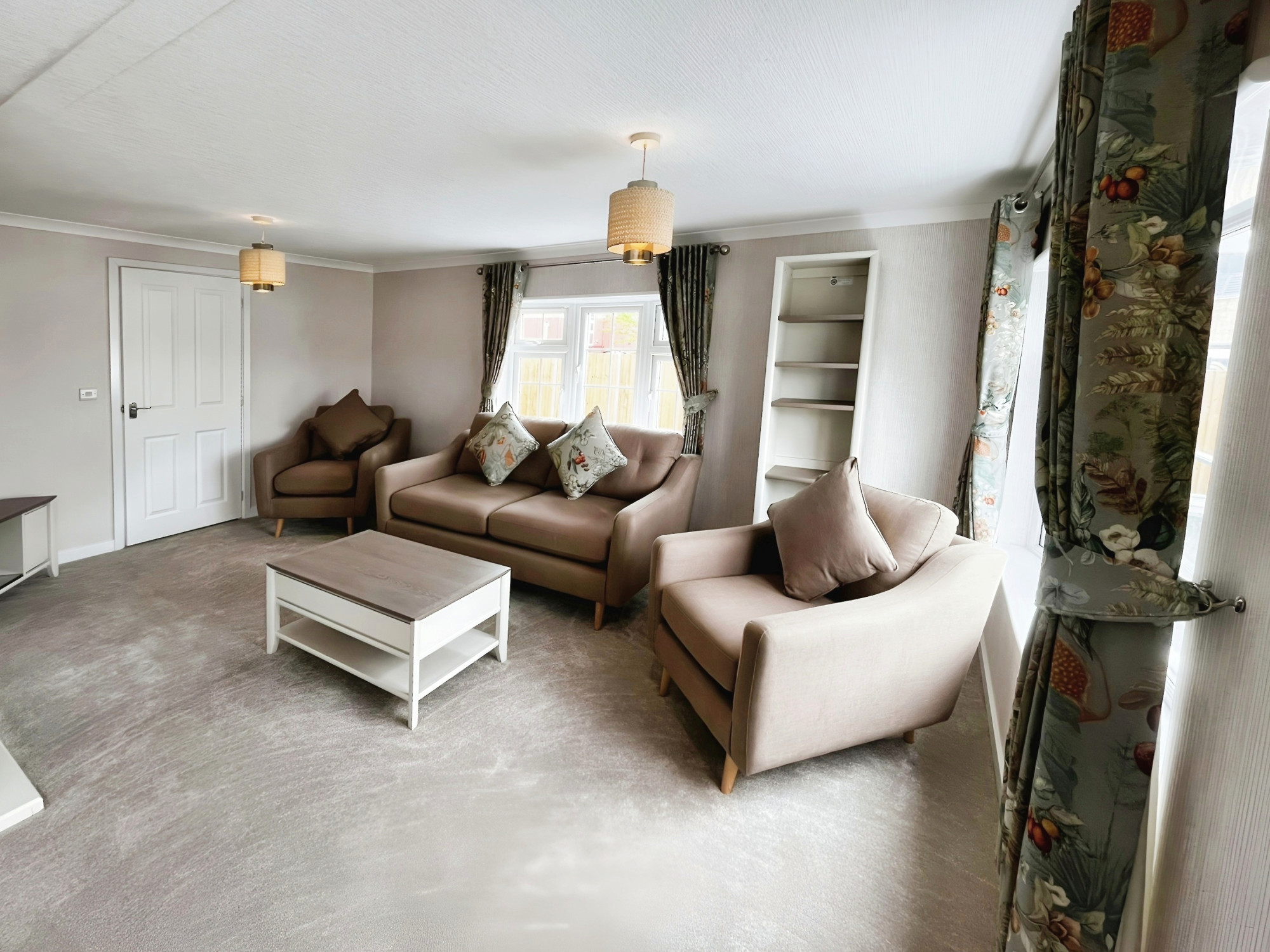 This brand-new, modern-furnished Omar Middleton (40'x20') luxury park home is perfect for those looking for a detached, easy-to-maintain, bungalow-style property. The home has a modern kitchen with integrated appliances, comfortable living room with an electric fireplace, two double bedrooms, an en suite and a bathroom. The landscaped exterior boasts an easy to maintain garden and driveway.