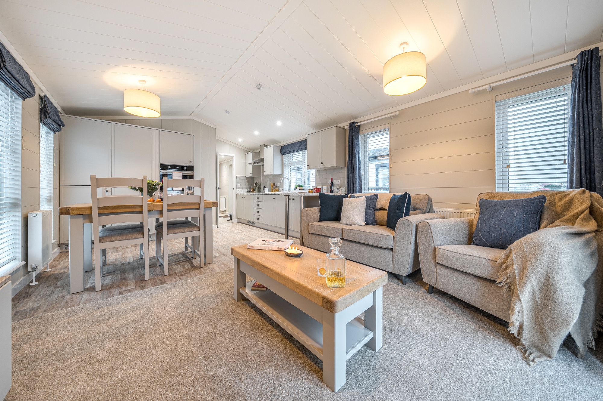 This brand new. modern-furnished luxury Omar Newmarket (45'x14') park home is perfect for those looking for a detached, easy-to-maintain, bungalow-style property. The home has a kitchen with integrated appliances, dining area and comfortable living room. There is one double bedroom, a single bedroom and a bathroom.