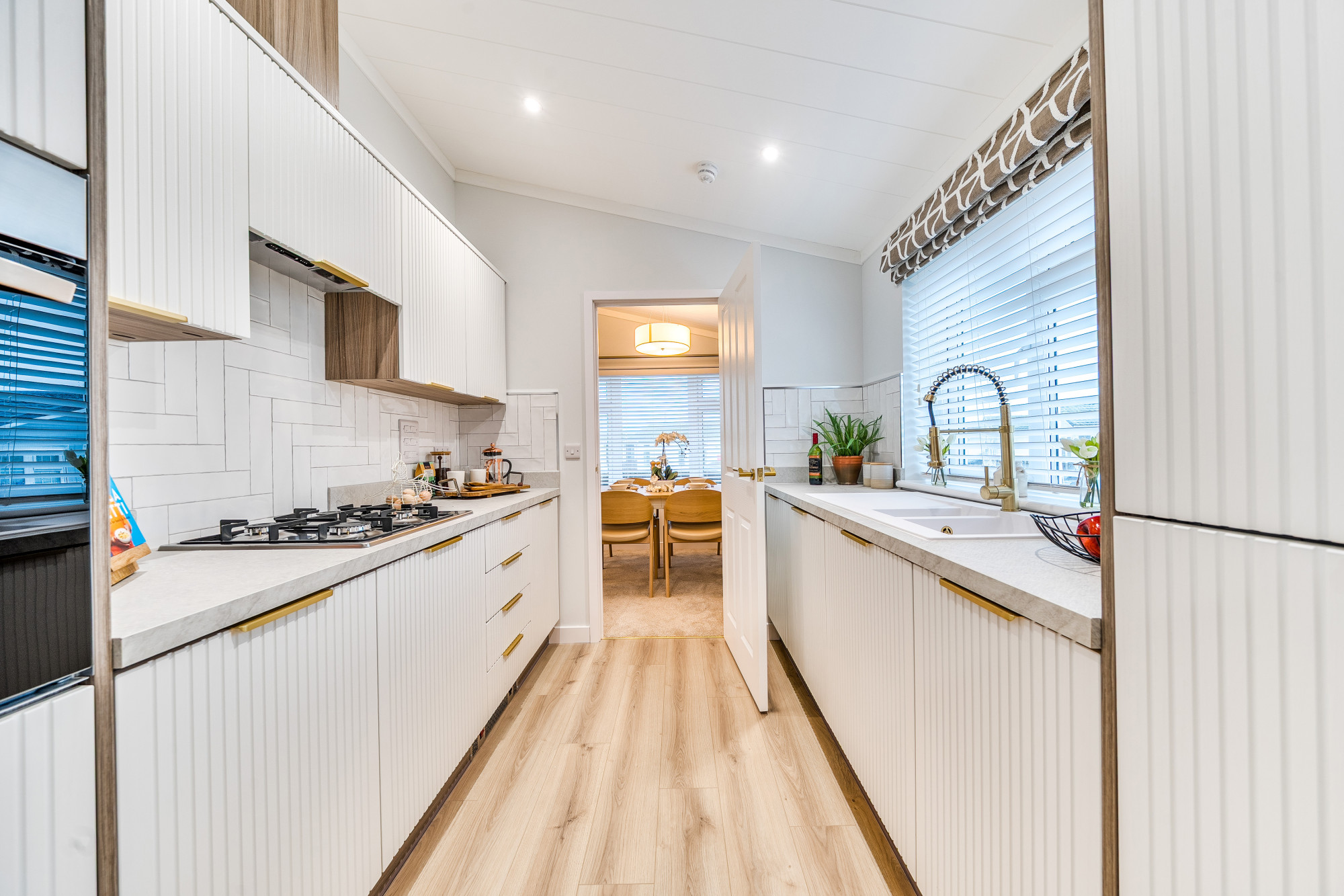 This brand new, modern-furnished luxury Omar Middleton (40'x20') park home is perfect for those looking for a detached, easy-to-maintain, bungalow-style property. The home has a galley-style kitchen with integrated appliances, dining area and comfortable living room. The master bedroom has an en suite and walk-in wardrobe, there is a second double bedroom and a bathroom.