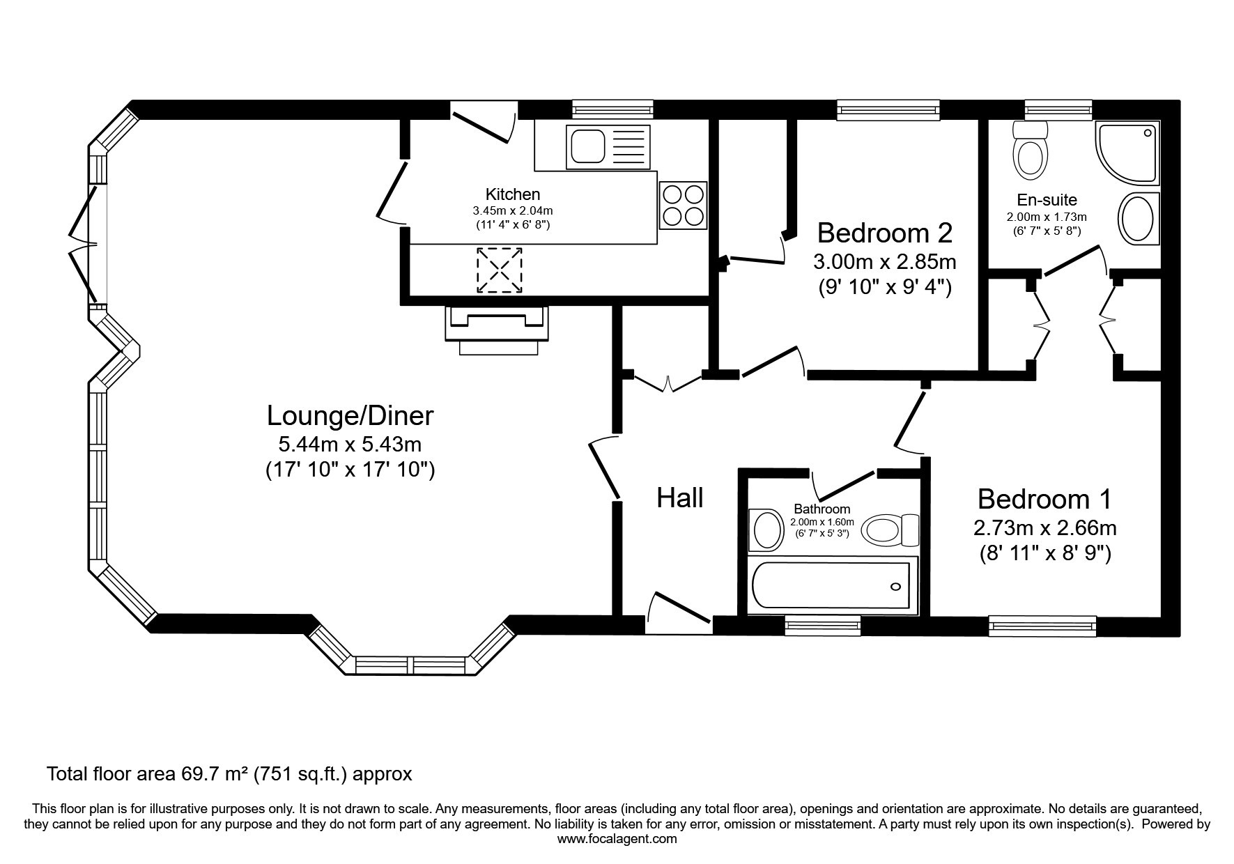 - Two bedrooms