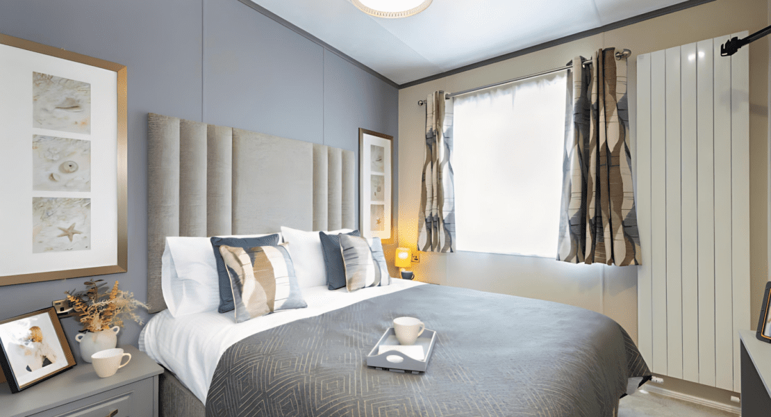 This brand-new, modern-furnished Pemberton Glendale (40'x22') luxury park home is perfect for those looking for a detached, easy-to-maintain, bungalow-style property. The home has a spacious open plan kitchen, dining area and living room with integrated appliances, island and electric fireplace. The master bedroom has an en suite and a dressing area, there is a second bedroom and a bathroom.