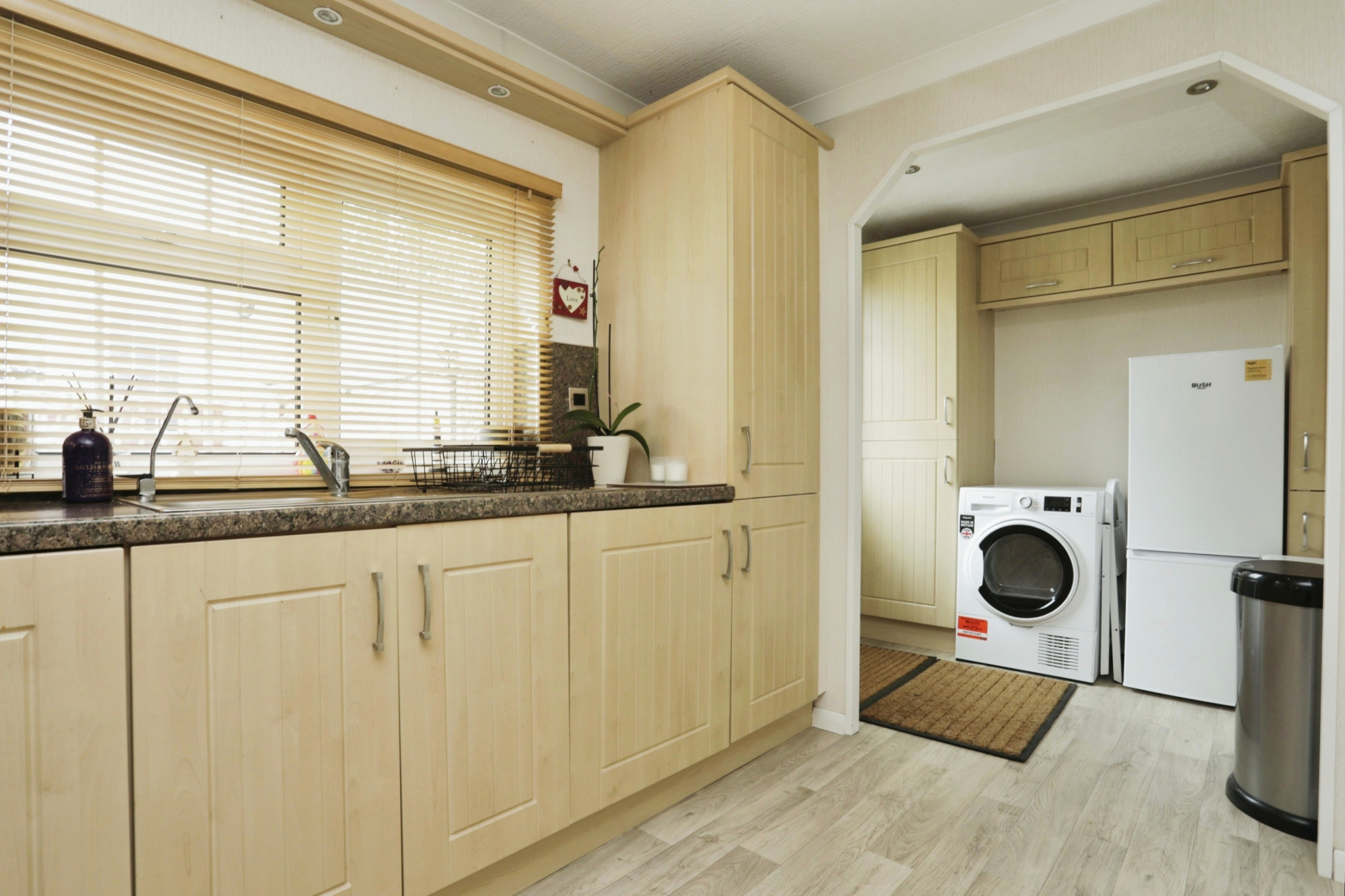 This pre-owned Homeseeker (48'x20') park home is perfect for those looking for a detached, easy to maintain, bungalow style retirement property. The home has a spacious kitchen and utility room, dining area and living room with large windows and an electric fireplace. There are two double bedrooms, both with fitted wardrobes, and the master bedroom has an en suite. The family bathroom also has a bath tub. The home home has gas central heating and a garage with light and power.