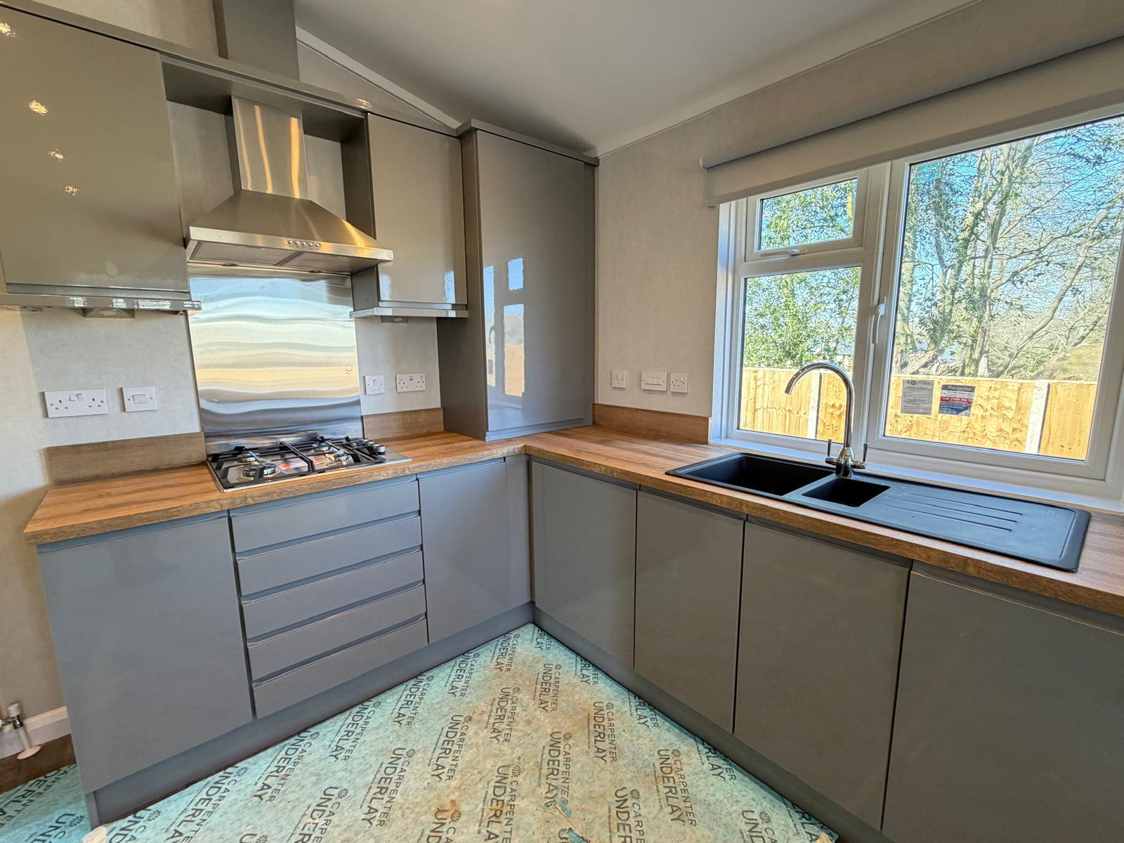 This brand new, modern-furnished Stately Tredegar (34'x22') luxury park home is perfect for those looking for a detached, easy to maintain, bungalow-style property. The home features a modern, fitted kitchen with integrated appliances that lead into a living room/dining area with comfortable furniture. There are two double bedrooms, an en suite and a bathroom. The home has a secluded garden and countryside views.