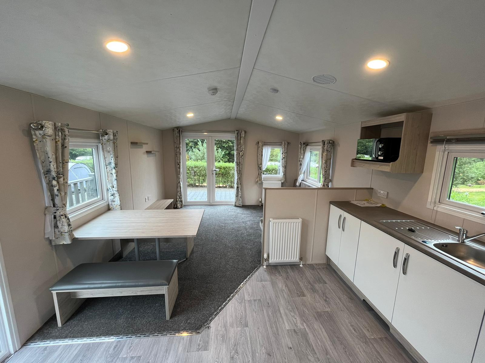 This brand new, modern-furnished Delta Galloway (36'x12') luxury lodge is perfect for those looking for a detached, easy to maintain, bungalow-style property. The lodge features an open plan kitchen, dining and living area, with modern and comfortable furniture, and two bedrooms.