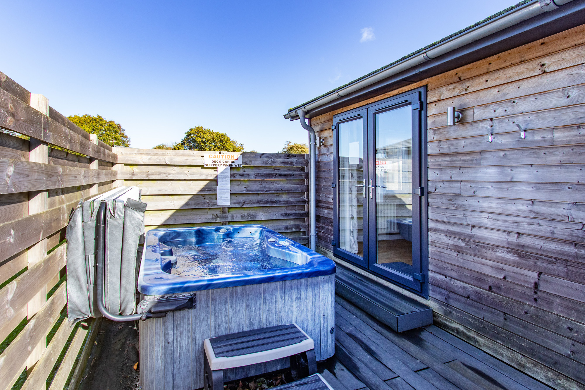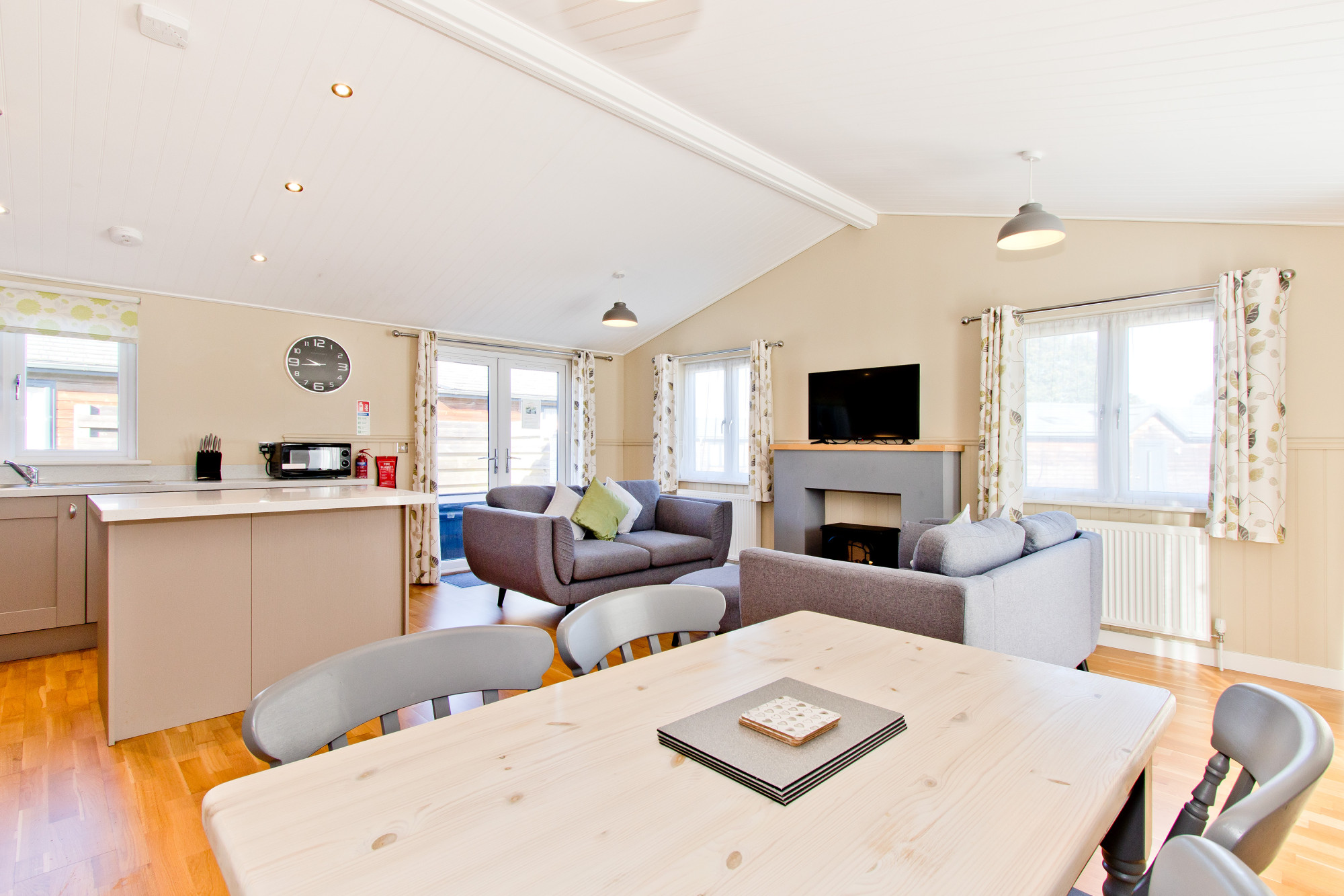 This pre-loved & refurbished lodge (40'x20') is perfect for those looking for a detached, easy-to-maintain, bungalow-style property. The home has an open plan layout, with a modern kitchen with integrated appliance and an island, a comfortable living area with an electric fireplace, two bedrooms, an en suite and a bathroom. The exterior includes decking with a hot tub, and a parking space.