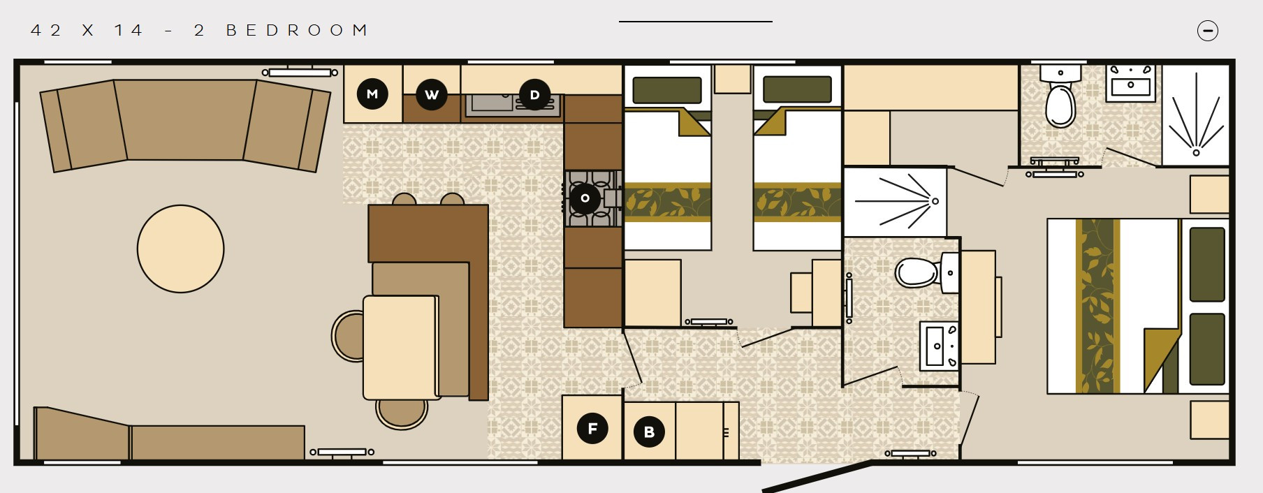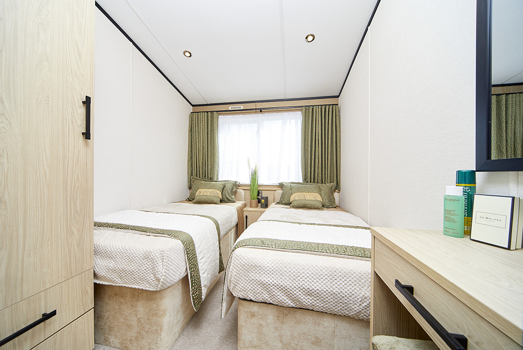 This brand-new, modern-furnished Victory Carnaby Grantly (42'x14') luxury lodge is perfect for those looking for a detached, easy-to-maintain, bungalow-style lodge. The lodge consists of an open plan kitchen, dinning and living area, one double bedroom a a second bedroom with single beds and a family shower room. The lodge also has double glazing, gas central heating, UPVC sun decking, patio doors and a tarmacked driveway.