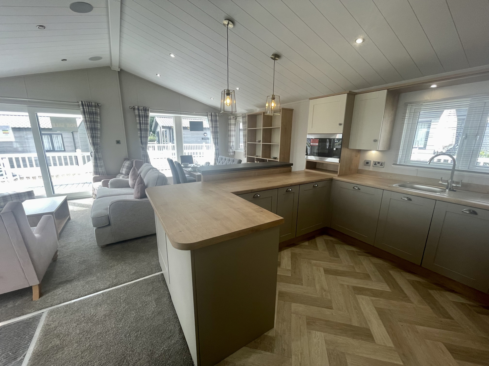This brand new, modern-furnished Portland (40'x20') luxury lodge is perfect for those looking for a detached, easy to maintain, bungalow-style property. The lodge has an open plan layout, a modern kitchen with integrated appliances, comfortable living area and French doors leading onto the decking. There are three bedrooms and two bathrooms.