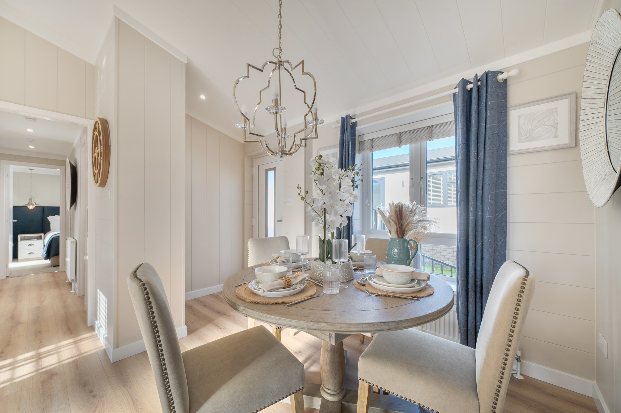 This brand new, modern-furnished Omar Image park home (45'x20') is perfect for those looking for a detached, easy to maintain, bungalow-style property. The home has a spacious and modern kitchen with integrated appliances, dining area and a comfortable living room. The master bedroom has a dressing area and en suite shower room, there is a second double bedroom and a family bathroom. The home also has parking and a garden space.