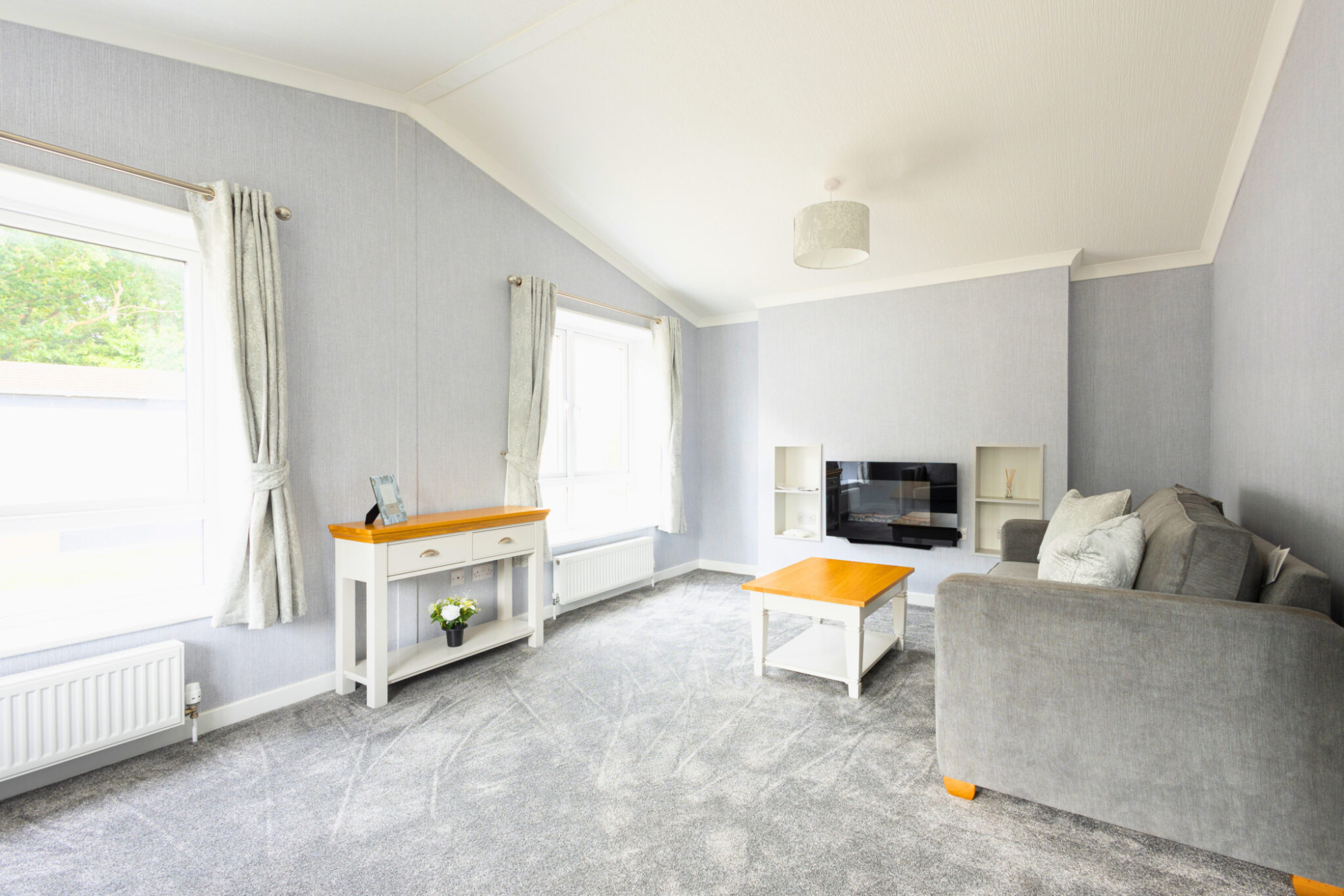 This brand new, modern-furnished Omar Image (44'x20') luxury park home is perfect for those looking for a detached, easy to maintain, bungalow style property. The home has a modern, spacious kitchen with integrated appliances, a comfortable living and dining room, two double bedrooms and two bathrooms.