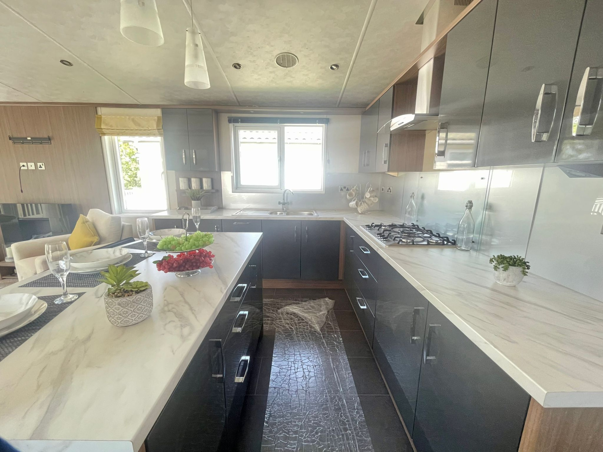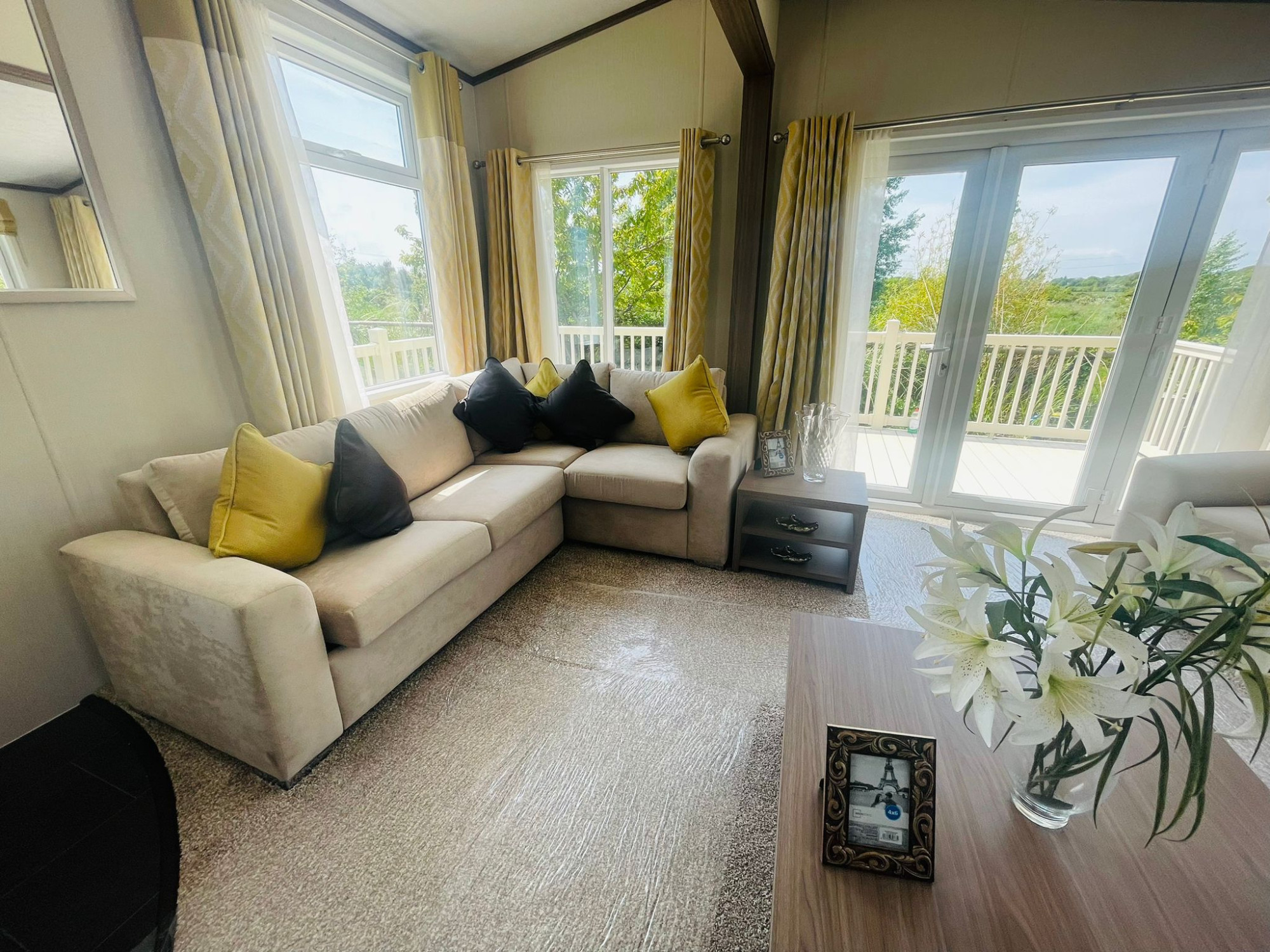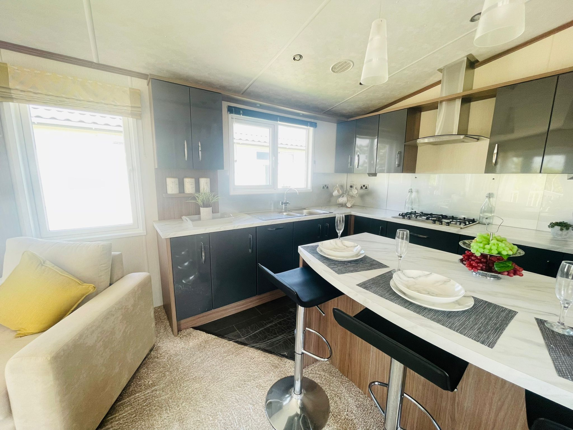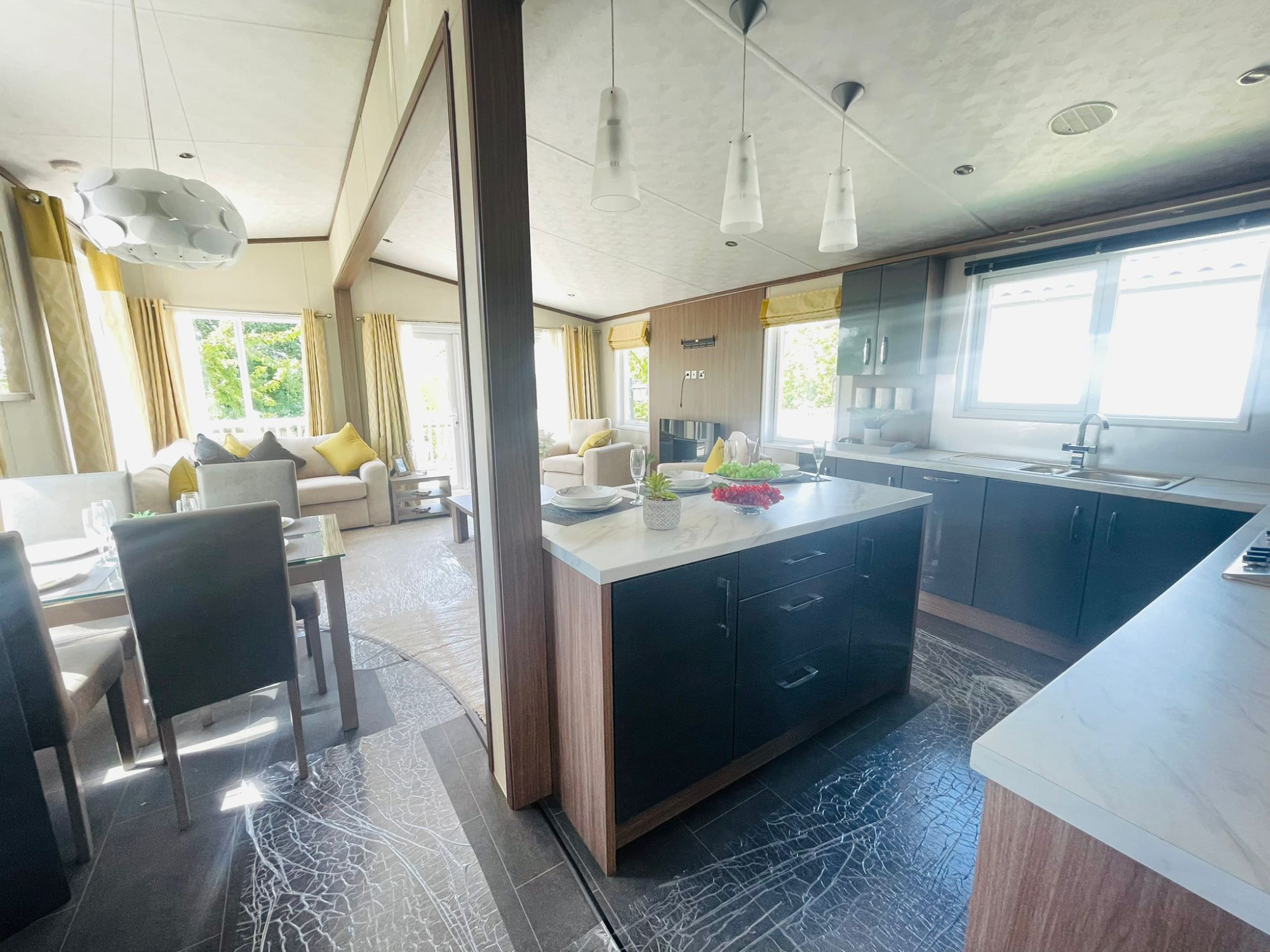 This brand new, modern-furnished Pemberton Arrondale (42'x16') luxury lodge is perfect for those looking for a detached, easy to maintain, bungalow-style property. The lodge has an open plan kitchen, dining and living area, two bedrooms and two bathrooms. The landscaped exterior boasts a block paved driveway, and decking.