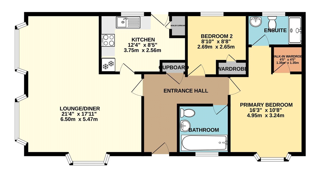 This pre-owned, modern-furnished Prestige Sonata (40'x20') luxury park home is perfect for those looking for a detached, easy-to-maintain, bungalow-style property. The home has a modern, spacious kitchen with integrated appliances, a comfortable living and dining area. The master bedroom has a walk-in wardrobe and an en suite, a second double bedroom and a bathroom.