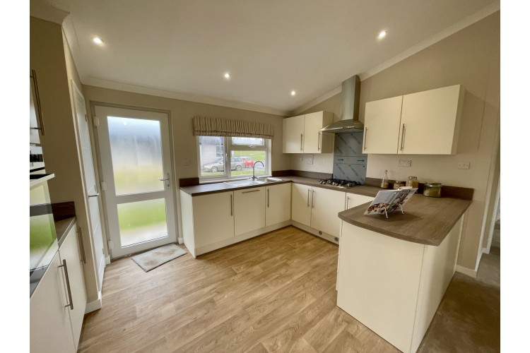 This brand new, modern-furnished Omar Newmarket (45'x20') luxury park home is perfect for those looking for a detached, easy to maintain, bungalow-style property. The home features a spacious kitchen and dining area, a separate living room with large windows, two double bedrooms and two bathrooms. The home has views over the river bank, decking and parking for two cars.