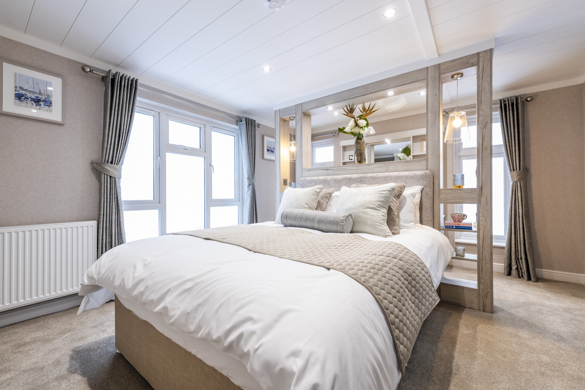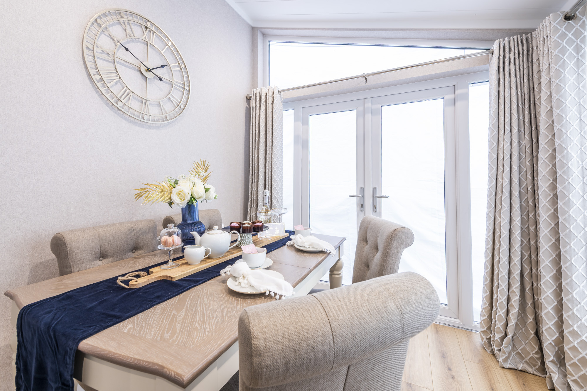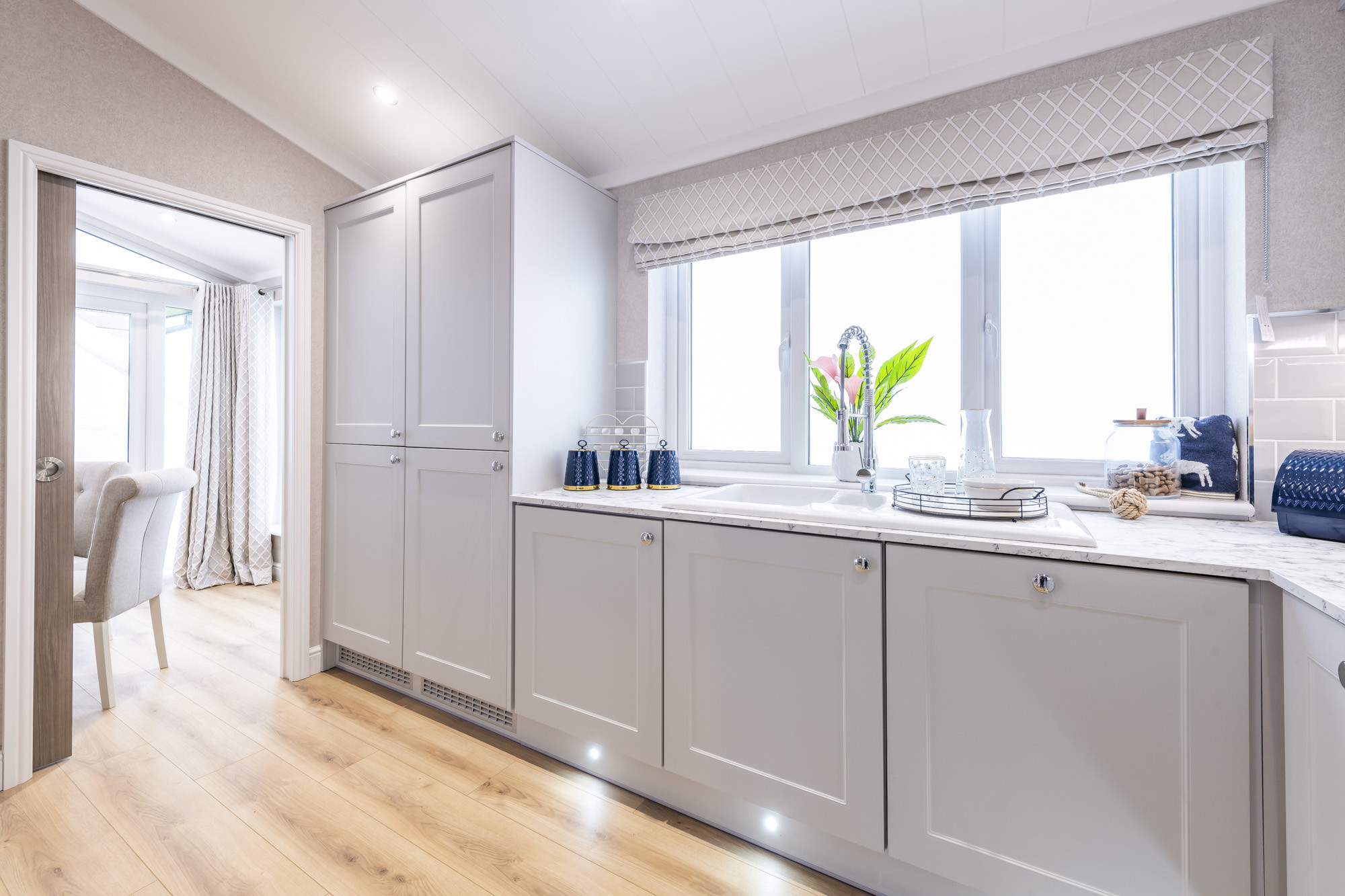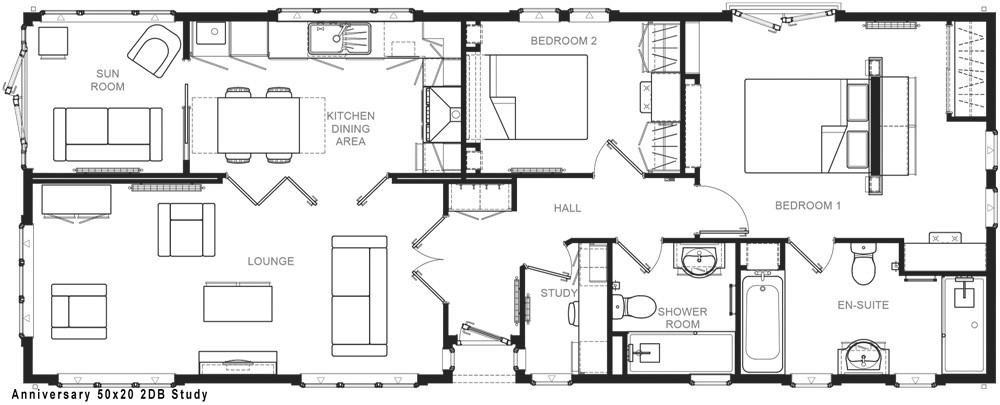This brand-new, modern-furnished Omar Anniversary (50'x20') luxury park home is perfect for those looking for a detached, easy-to-maintain, bungalow-style property. The home has a spacious kitchen with integrated appliances, and a dining area, leading to a comfortable living room. There are two double bedrooms, an en suite and a bathroom.