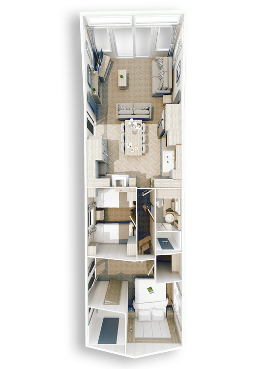 This brand-new, modern-furnished Willerby Vogue (43'x14') luxury lodge is perfect for those looking for a detached, easy-to-maintain, bungalow-style leisure property. The lodge has a spacious, open plan layout with a modern kitchen with integrated appliances, comfortable living room and dining area. There is a double bedroom with an en suite, a twin bedroom and a bathroom.