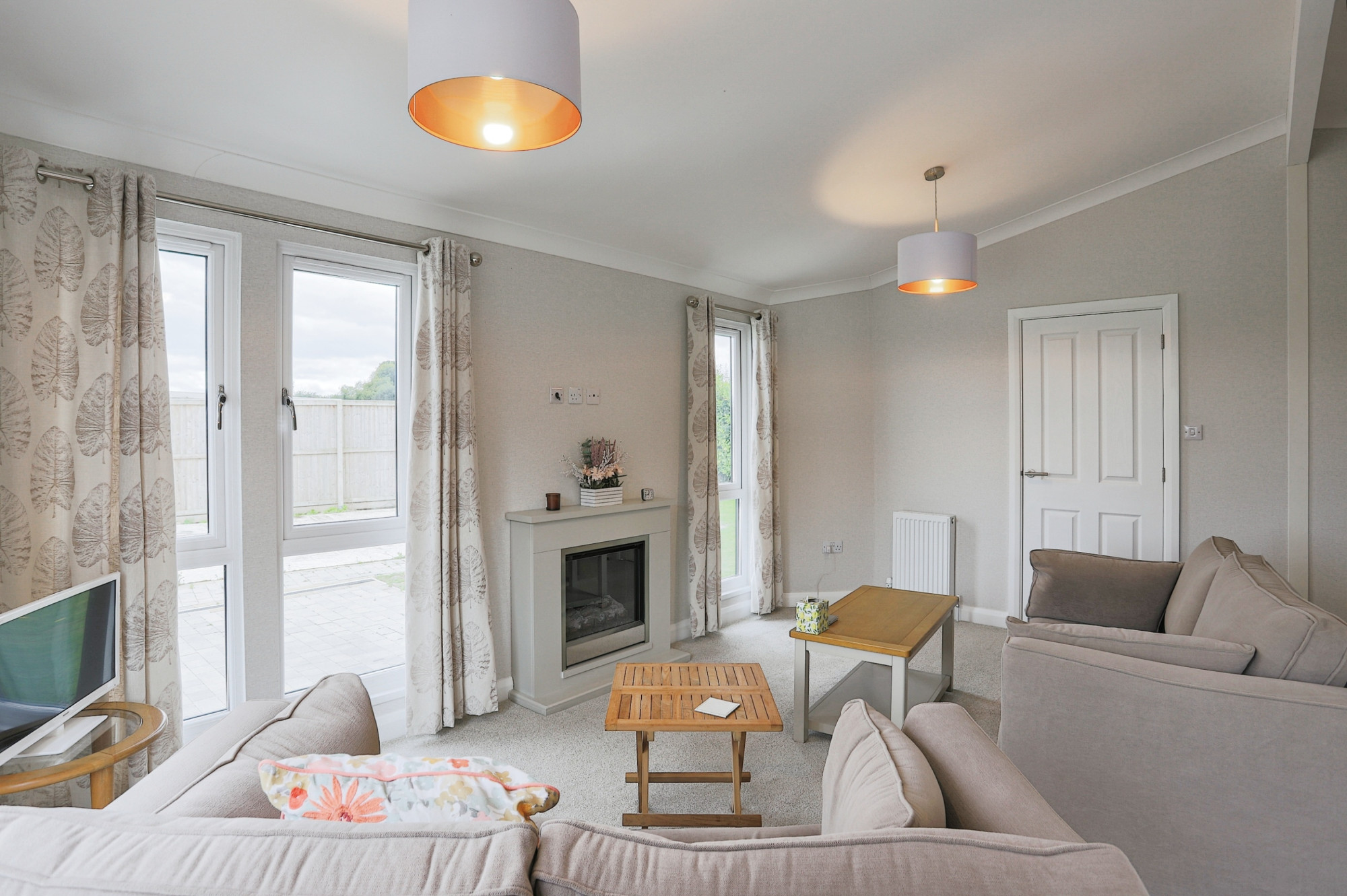 This modern Willerby Hazlewood (40'x20') luxury park home is perfect for those looking for a detached, easy to maintain, bungalow-style property. The home features a galley style kitchen, comfortable living room with an electric fireplace, two double bedrooms and two bathrooms. The exterior has a garden space with views of the surrounding countryside, raised patio area and a parking space.